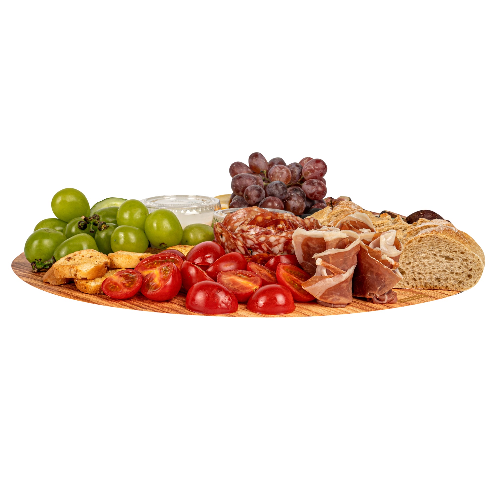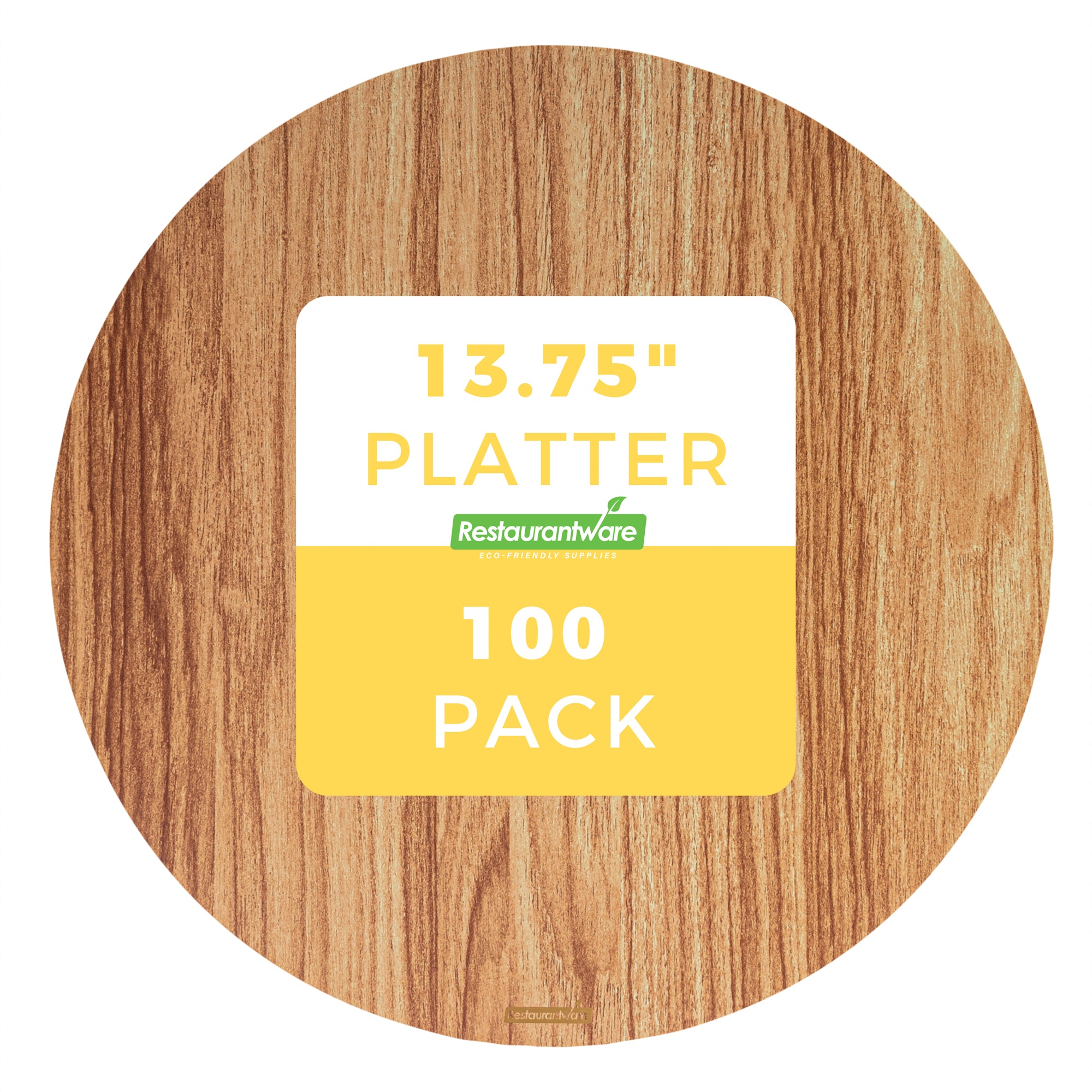 Enhance your catering service with an elegant presentation. The Cater Tek Disposable Charcuterie Board showcases a faux wood finish, elevating the aesthetic of cheese and charcuterie assortments for any event. Crafted from durable cardboard, this round cardboard serving tray measures 13.75 inches in diameter, providing ample space to accommodate large platters while ensuring reliable service without bending or breaking. Its sturdy design supports both hot and cold foods, making it versatile for any menu offering. Moreover, this biodegradable charcuterie platter is not only eco-friendly but also disposable, facilitating quick cleanup and reducing labor costs. Perfect for weddings, corporate events, and more, it’s an essential addition to high-volume catering operations. Each order includes 10 Cater Tek Disposable Charcuterie Boards.