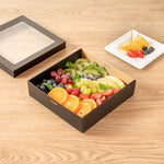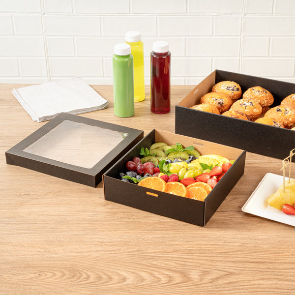 SQUARE BLACK PAPER CATERING BOX - WITH WINDOW LID