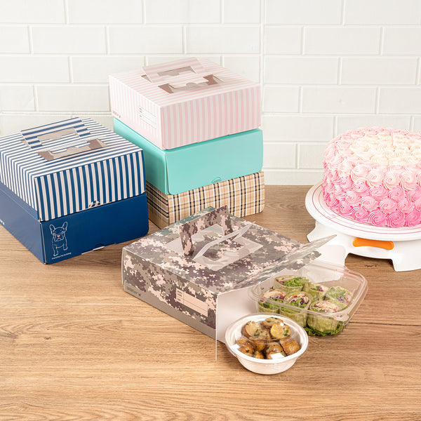 SQUARE CAMOUFLAGE PAPER CAKE / TAKE OUT CONTAINER - WITH HANDLE,WINDOW