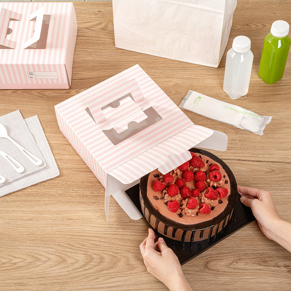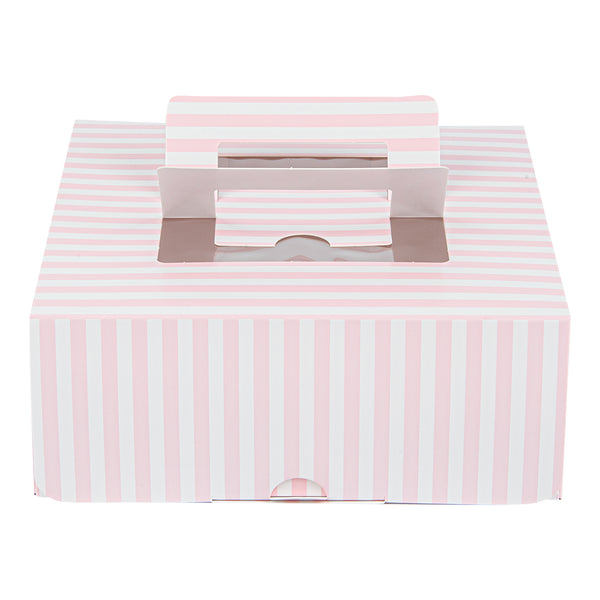 PINK AND WHITE STRIPE PAPER CAKE / TAKE OUT CONTAINER - HANDLE, WINDOW