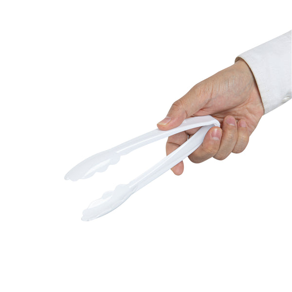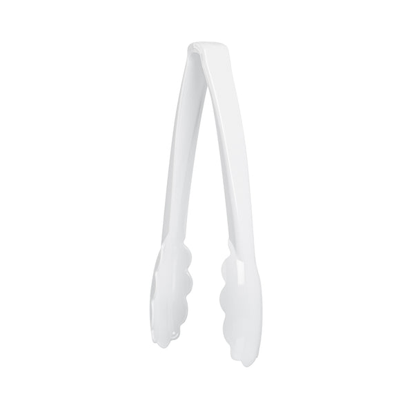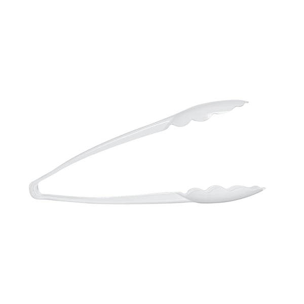 WHITE HEAVY-DUTY DISPOSABLE PLASTIC TONGS - SCALLOPED