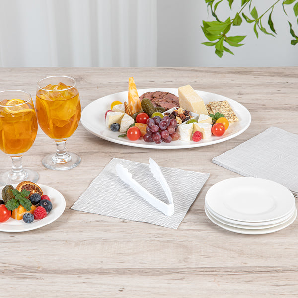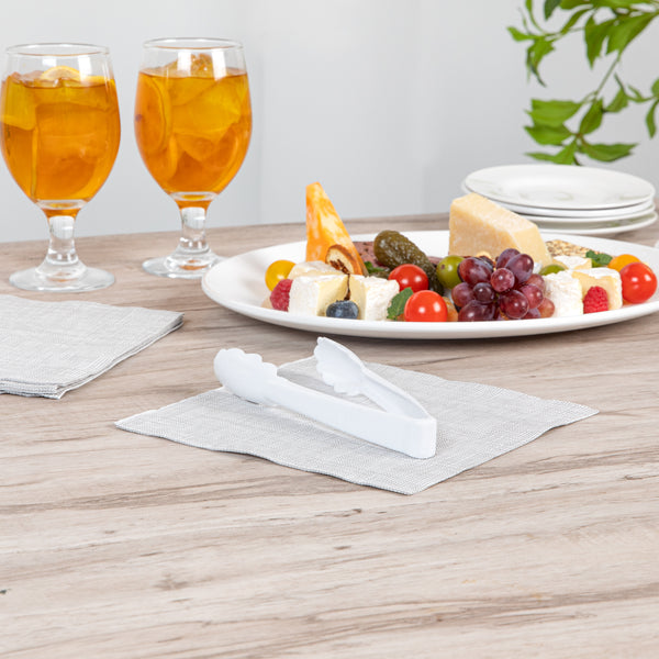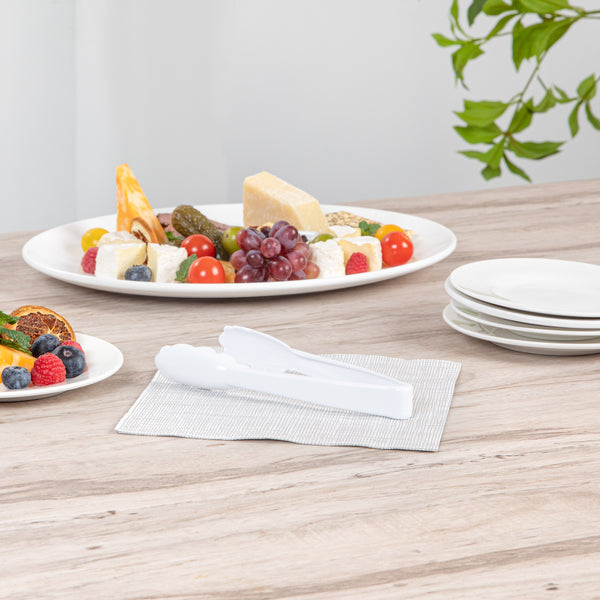 Make foodservice effortless with our Cater Tek White Heavy-Duty Disposable Plastic Tongs. Made of heavy-duty plastic, these serving tongs are crafted to be sturdy and dependable, reducing the risk of breakage. The scalloped edges of these salad tongs offer a secure grip, ensuring precise handling of various food items without slipping. These food tongs are food-grade, ensuring safety and reliability for all your foodservice needs. Designed to withstand temperatures from -40°F to 176°F, these disposable tongs are ideal for serving an assortment of foods, including salads, appetizers, and desserts. Featuring strong handles, these serving tongs provide a firm grip, making it easy to serve even larger portions. Designed for easy disposal, these food tongs are recyclable, simplifying cleanup at buffets, weddings, and catered events. Perfect for maintaining cleanliness at self-service stations, these plastic serving tongs offer both convenience and efficiency. Measuring 7 inches in length by 2 inches in width by 1.25 inches in height, these tongs are compact and practical. Sold in a 10 count box.
