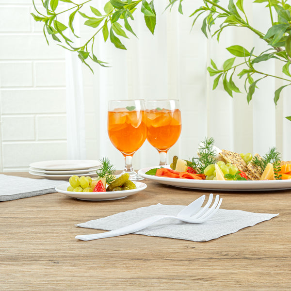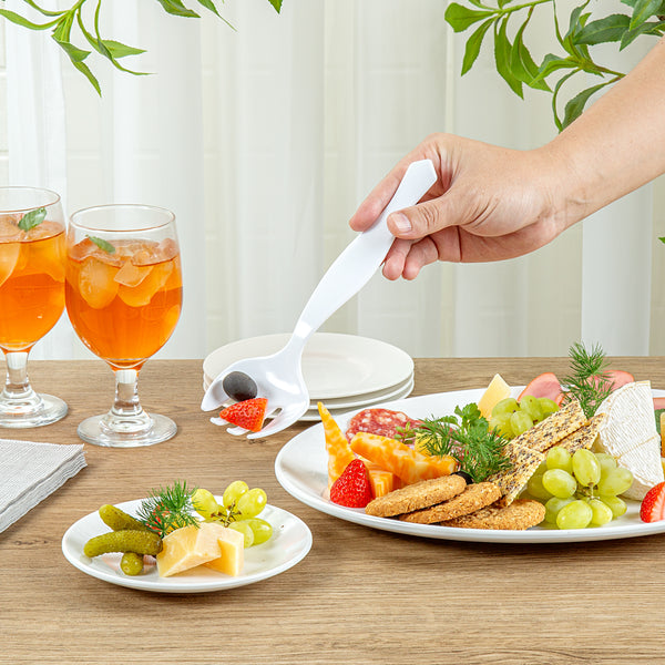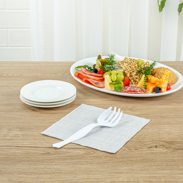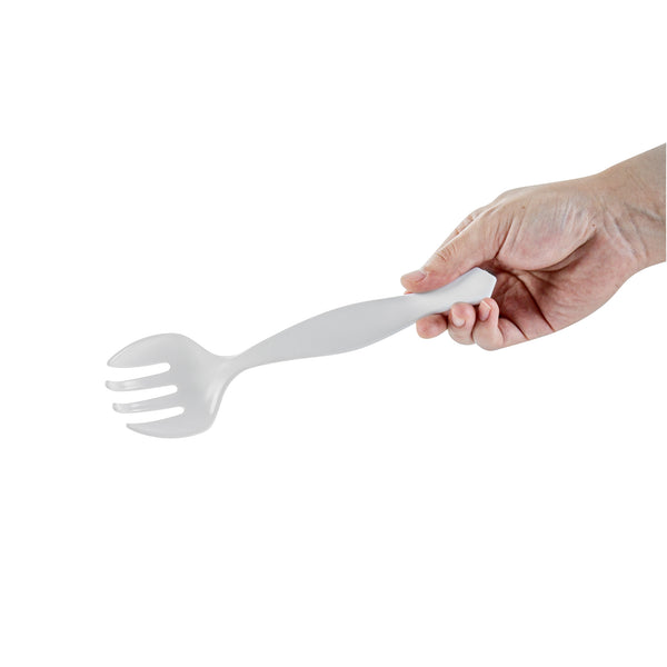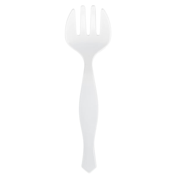 Enhance your dining experience with our Cater Tek White Plastic Serving Forks. These serving forks, equipped with four prongs, are engineered to effortlessly lift and transfer foods, ensuring swift and effective service. With an ergonomically designed handle, these disposable forks provide superior comfort and ease of use, making them ideal for effortless handling during any meal. These salad forks are made from premium plastic and suitable for handling a wide variety of hot and cold food items. Ideal for large events, these plastic forks are disposable and can be discarded after use, promoting a quick cleanup. Featuring a white finish, these disposable plastic forks provide a clean and classic look, making them suitable for any occasion. Measuring 8.5 inches in length by 2.36 inches in width, these white plastic forks are the perfect size for various dishes. Sold in a 10 count box.