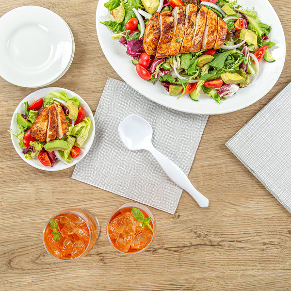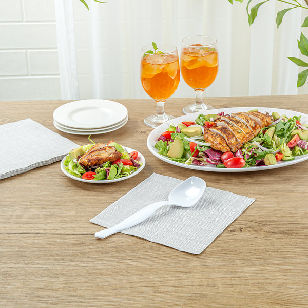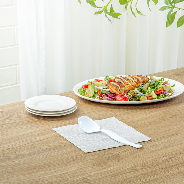 Enhance your foodservice experience with our Cater Tek White Plastic Serving Spoons. These large serving spoons feature a generously sized bowl to scoop and serve substantial portions of food efficiently. Designed with an ergonomic handle, these plastic serving spoons ensure a comfortable grip, making serving easy and reducing hand strain. Crafted from premium plastic, these disposable spoons are perfect for serving hot and cold food items, from soups and stews to salads and desserts. With a disposable design, these plastic spoons promote fast and efficient cleanup at the end of your event. Measuring 8.5 inches in length by 2.36 inches in width by 1.38 inches in height, these serving spoons are both practical and convenient. Sold in a 10 count box.