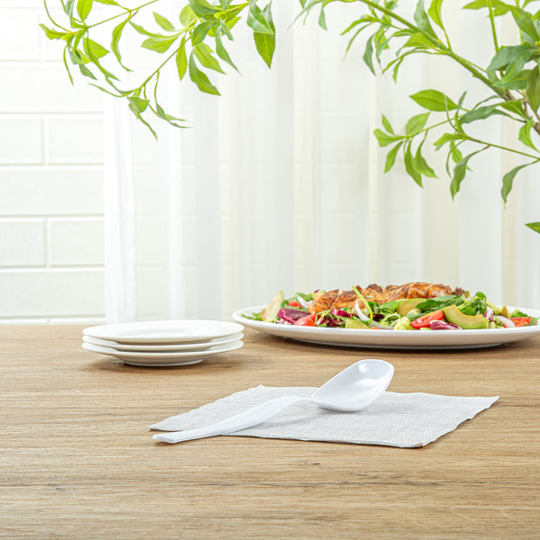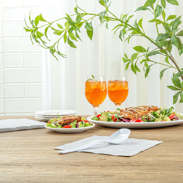 Enhance your foodservice experience with our Cater Tek White Plastic Serving Spoons. These large serving spoons feature a generously sized bowl to scoop and serve substantial portions of food efficiently. Designed with an ergonomic handle, these plastic serving spoons ensure a comfortable grip, making serving easy and reducing hand strain. Crafted from premium plastic, these disposable spoons are perfect for serving hot and cold food items, from soups and stews to salads and desserts. With a disposable design, these plastic spoons promote fast and efficient cleanup at the end of your event. Measuring 8.5 inches in length by 2.36 inches in width by 1.38 inches in height, these serving spoons are both practical and convenient. Sold in a 100 count box.