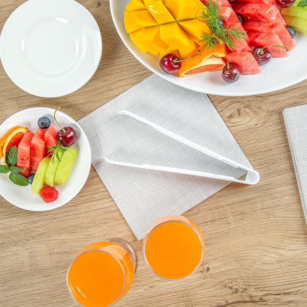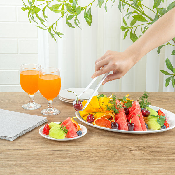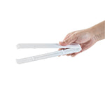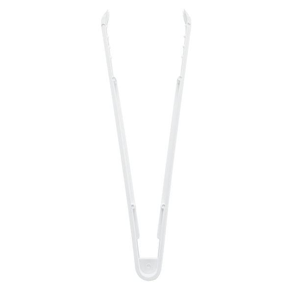 Enhance your foodservice operations with our Cater Tek White Plastic Tongs. These serving tongs feature serrated tips to ensure a firm hold on food items, preventing slipping and providing better control when handling slippery or delicate foods. Made of premium plastic, these food tongs are durable and sturdy, suitable for handling hot and cold food items. These plastic plating tongs are heavy-duty and withstand frequent use in high-traffic service, making them ideal for bustling buffets and catering events. The long handle on these salad tongs offers a comfortable grip and extended reach, making it easy to serve and toss salads with ease. These plastic tongs are disposable and can be easily discarded after use, ensuring a quick post-event cleanup. The white finish of these disposable tongs creates an elegant look at your catering events. Measuring 9 inches in length by 3.54 inches in width, these appetizer tongs provide a practical solution for various serving needs. Sold in a 10 count box.