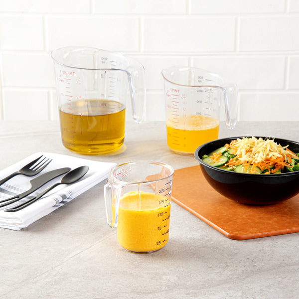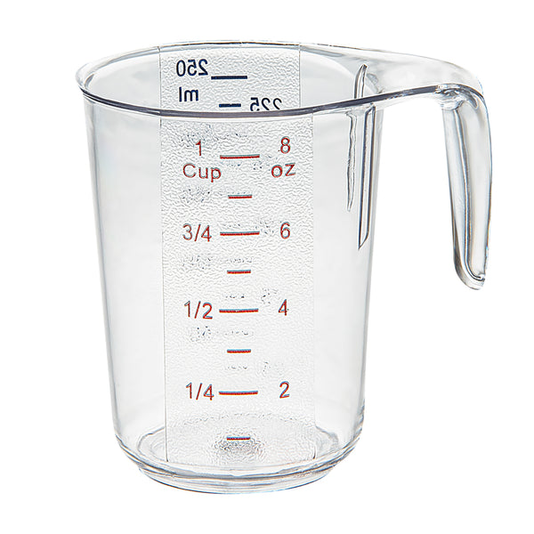The clear finish of these plastic cups let you measure ingredients easily and accurately. Built to simplify your cooking process.