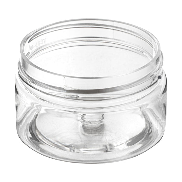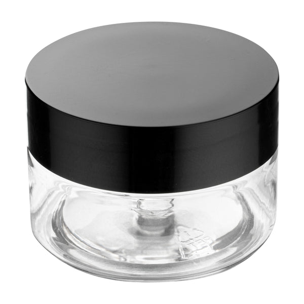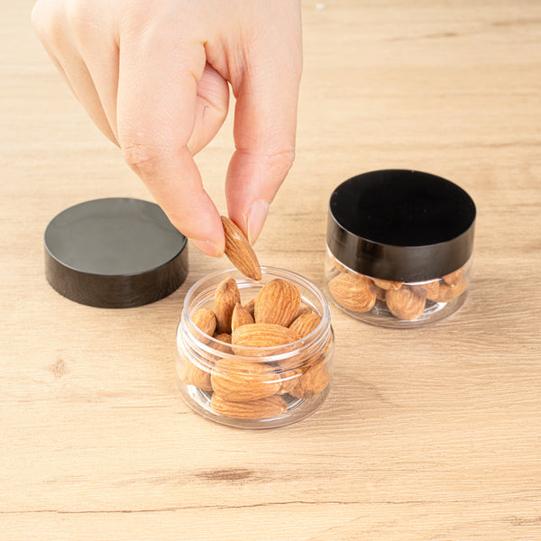 1 OZ ROUND CLEAR PLASTIC CANDY AND SNACK JAR - WITH BLACK PLASTIC LID