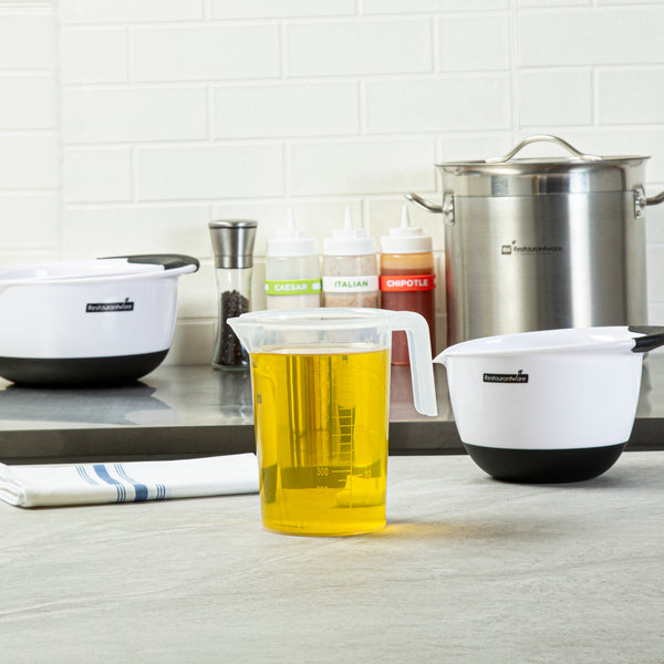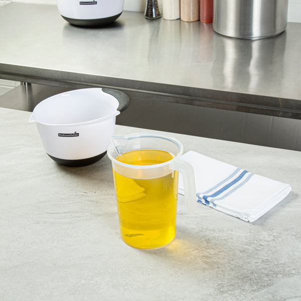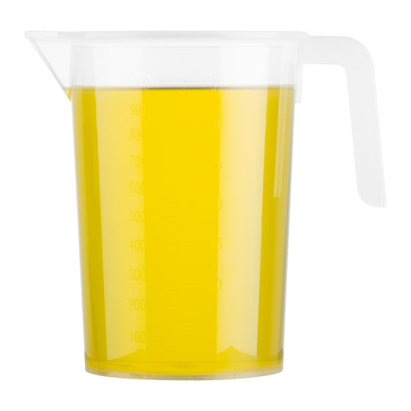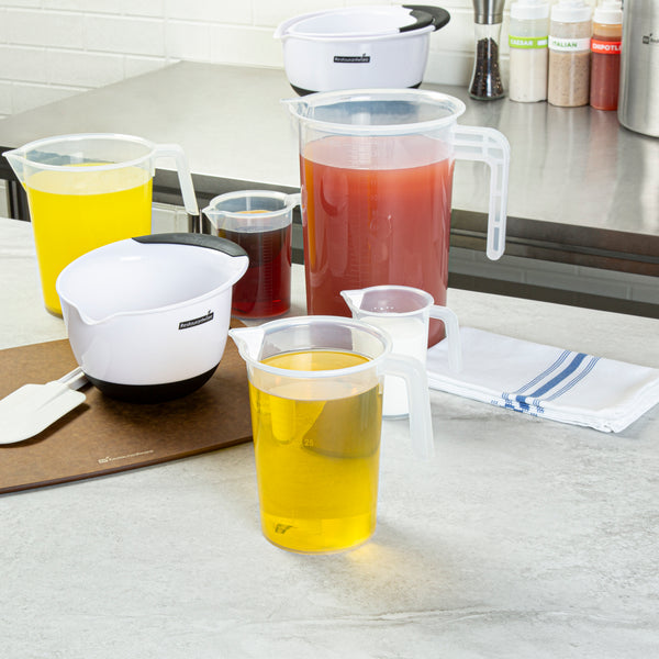 Ensure accurate measurements in your kitchen with our Chef 101 1-quart Clear Plastic Measuring Cup, ideal for chefs and home cooks. Made from durable, crack-resistant plastic, this food-safe measuring beaker is built to withstand frequent use. Featuring embossed metric and imperial graduations, this plastic measuring container provides clear and precise readings for liquids and dry ingredients. Designed with a conical spout, this plastic measuring pitcher allows controlled pouring, whether for a slow drizzle or a steady stream. The ergonomic I-beam handle with a thumb grip on this plastic measuring cup offers a firm hold for mess-free use. With a transparent finish, this liquid measuring cup makes it easy to monitor contents. Measuring 5.3 inches in length by 3.7 inches in width by 6.3 inches in height, this plastic measuring container holds a practical 1-quart capacity, making it perfect for all your cooking and baking needs. Sold in a 1 count box.
