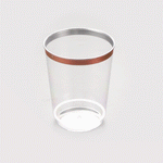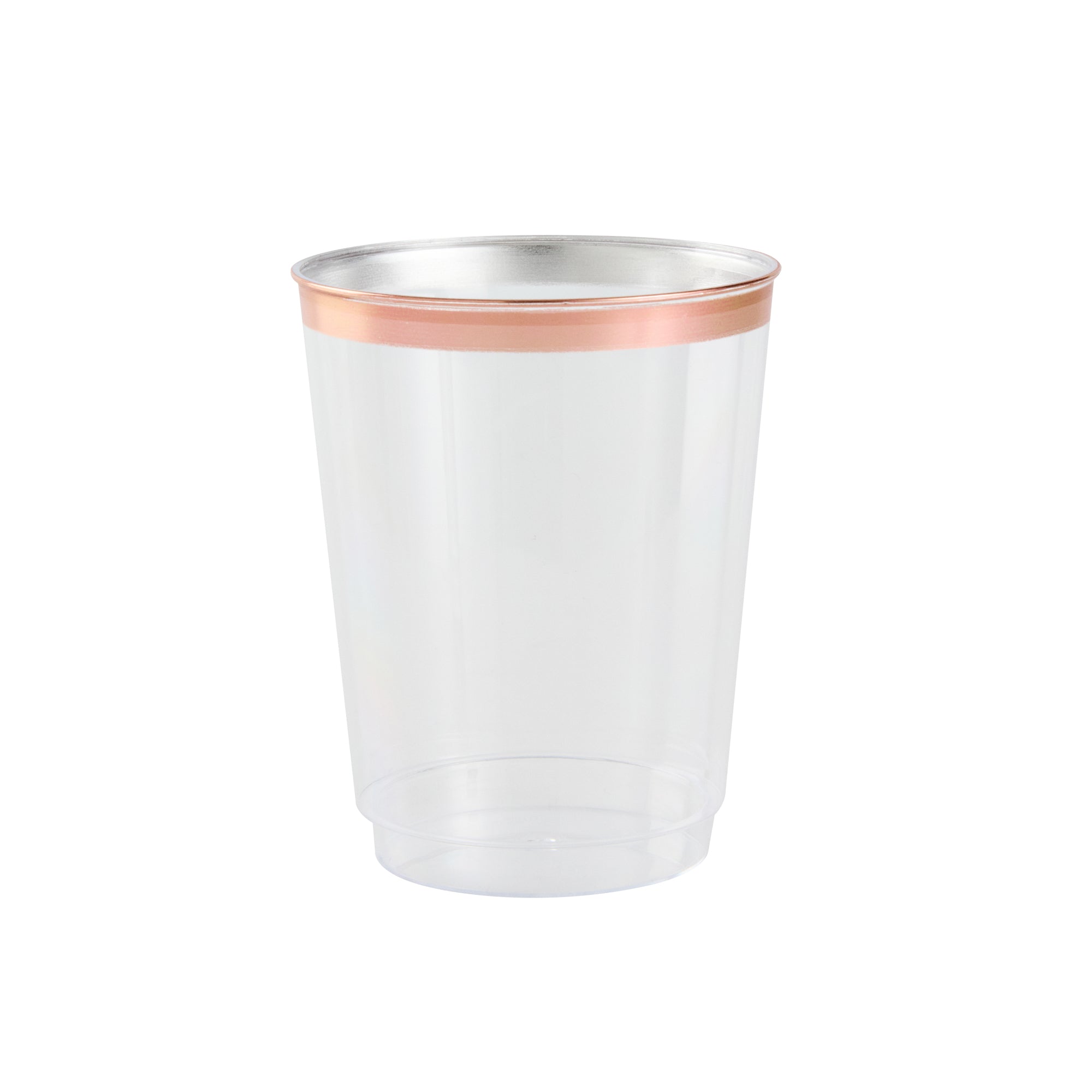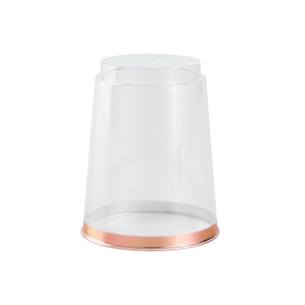 10 OZ CLEAR PLASTIC TUMBLER - WITH ROSE GOLD RIM