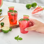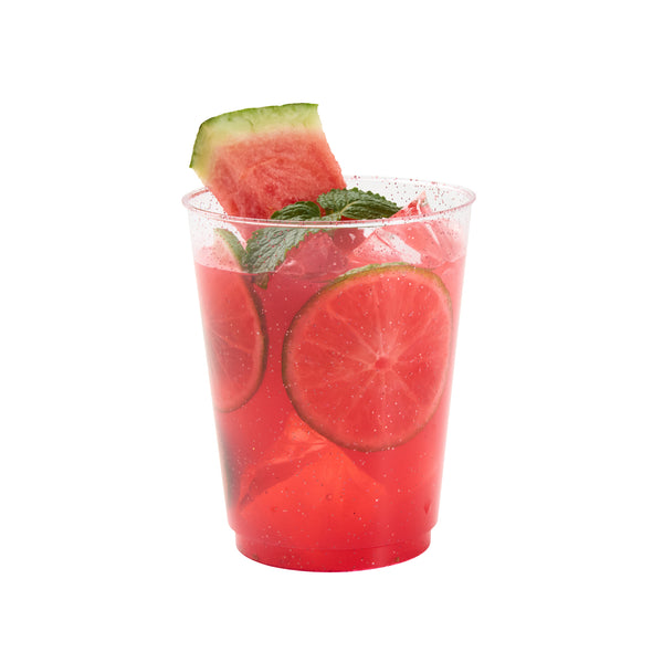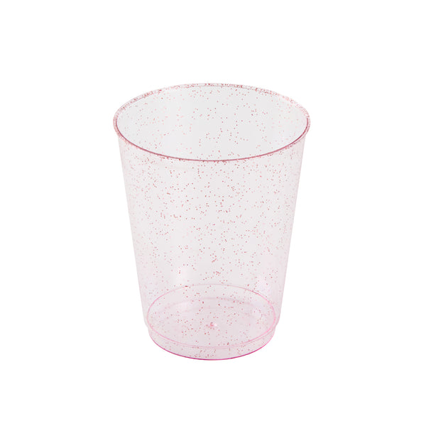 Elevate celebratory occasions with our Chef 101 10-ounce Pink Glitter Plastic Tumblers. Made from sturdy PS plastic, these party cups provide a dazzling touch to your event with their glitter that complements any beverage. These glitter disposable cups boast a durable design, maintaining their pristine appearance throughout use. With their cold food-friendly design, these glitter finish cups are perfect for serving cocktails or chilled desserts with ease. Their recyclable and disposable nature makes these cups easy to handle post-event, offering a sustainable choice for eco-conscious hosts. Highlight the elegance of your table settings while ensuring functionality with these versatile glitter disposable cups. Measuring 2.95 inches in diameter and 3.8 inches in height, these 10-ounce pink plastic cups are perfect for serving as fancy drinks at weddings, birthdays, and family reunions. Sold in a 20 count box.