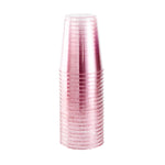 Elevate celebratory occasions with our Chef 101 10-ounce Pink Glitter Plastic Tumblers. Made from sturdy PS plastic, these party cups provide a dazzling touch to your event with their glitter that complements any beverage. These glitter disposable cups boast a durable design, maintaining their pristine appearance throughout use. With their cold food-friendly design, these glitter finish cups are perfect for serving cocktails or chilled desserts with ease. Their recyclable and disposable nature makes these cups easy to handle post-event, offering a sustainable choice for eco-conscious hosts. Highlight the elegance of your table settings while ensuring functionality with these versatile glitter disposable cups. Measuring 2.95 inches in diameter and 3.8 inches in height, these 10-ounce pink plastic cups are perfect for serving as fancy drinks at weddings, birthdays, and family reunions. Sold in a 500 count box.