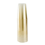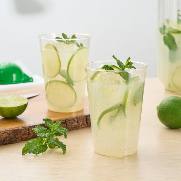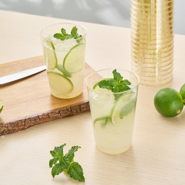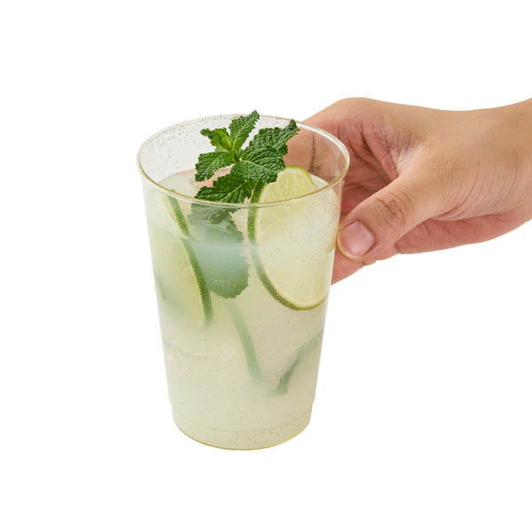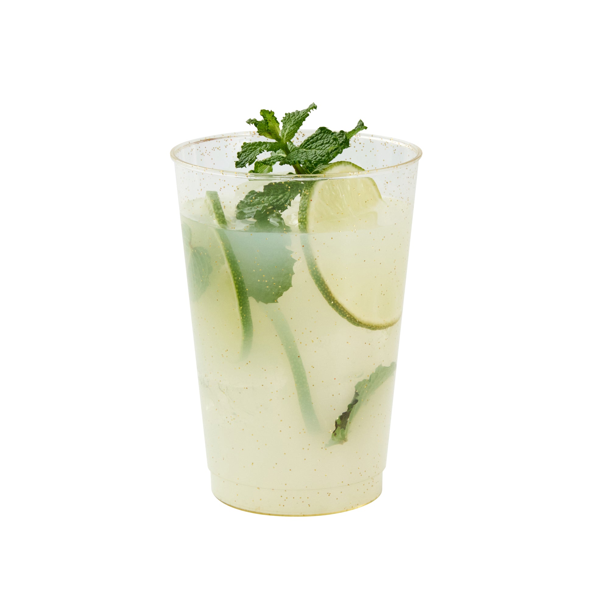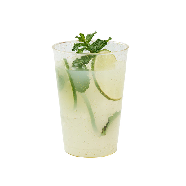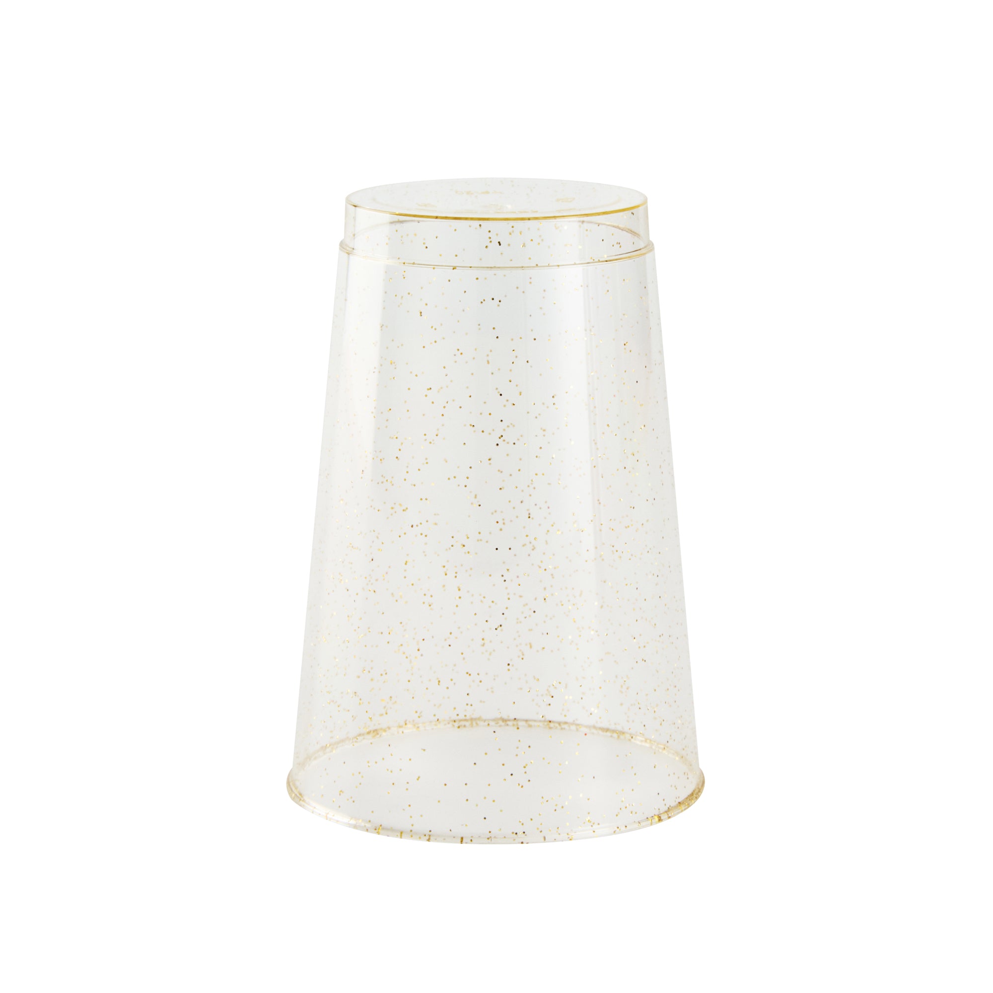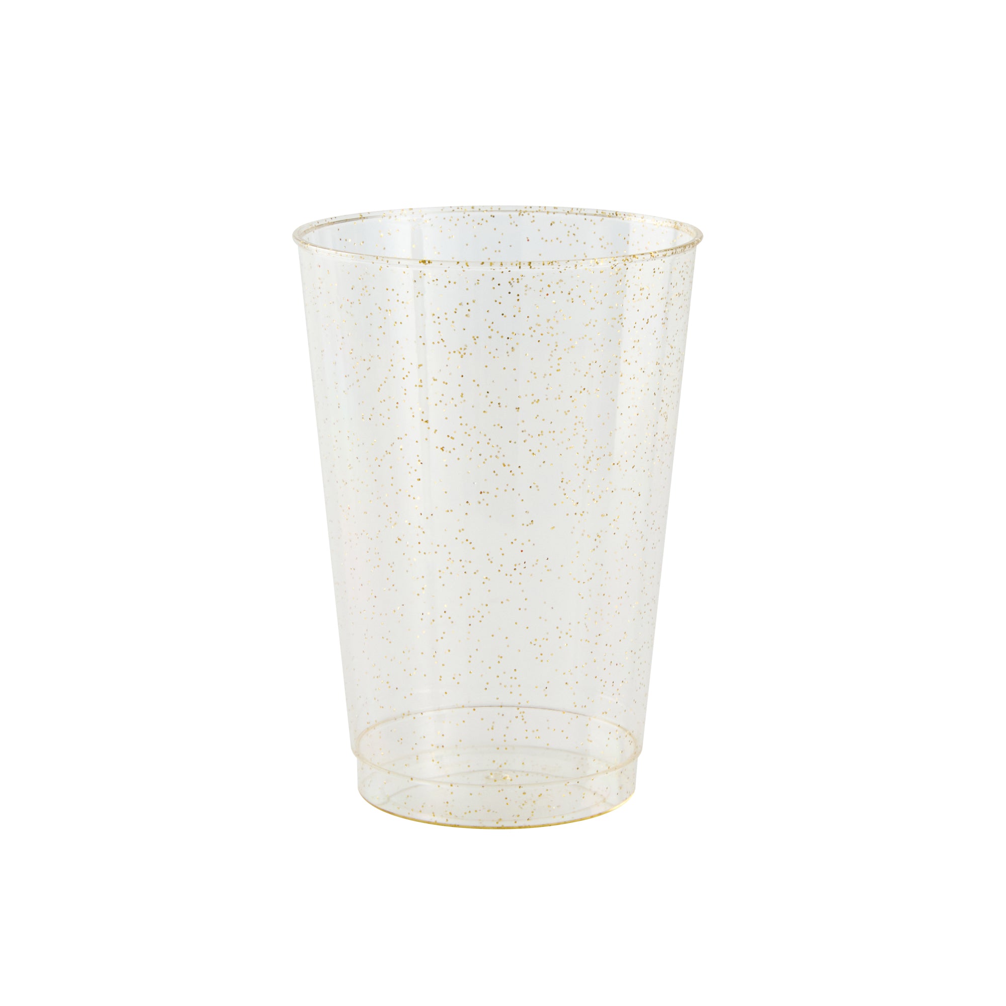 Add a touch of glittery elegance to your events with our Chef 101 12-ounce Gold Glitter Plastic Tumblers. These party cups combine a striking glitter design with durable PS plastic to enhance any festive atmosphere effortlessly. Perfect for weddings, birthdays, and family reunions, these compact gold glitter cups are ideal for single-serve beverages. Crafted from cold-friendly plastic, these glitter finish cups are perfect for chilling cocktails and soft drinks without losing their allure. Not only are these cocktail cups disposable, but their recyclable nature also supports sustainable practices. Provide an elegant touch to any gathering and ensure seamless service with these disposable glasses that are suitable for any cold beverage setup. Bring sparkle to your celebrations and make cleanup a breeze with these 12-ounce glitter disposable cups that measure 3 inches in diameter and 4.3 inches in height. Sold in a 20 count box.
