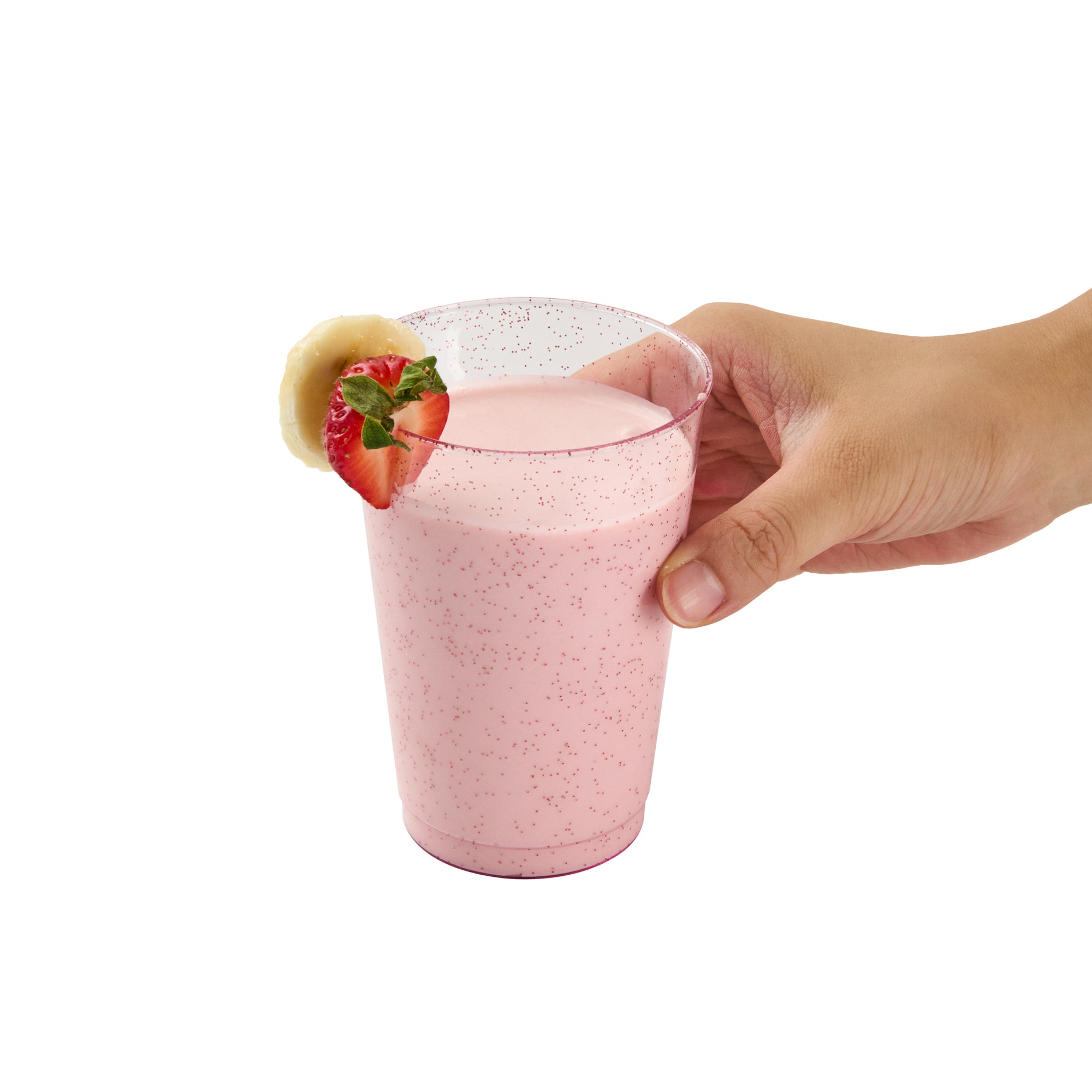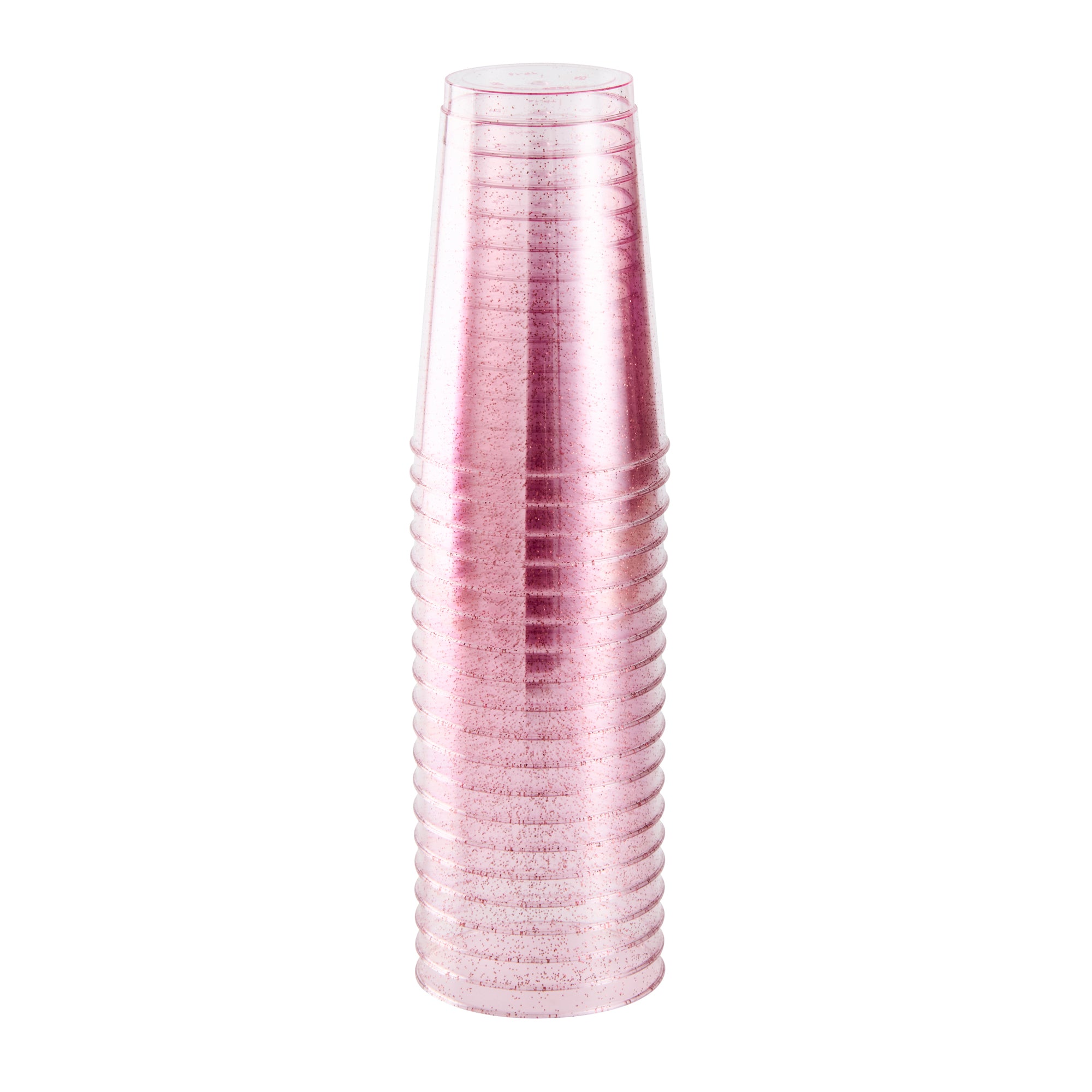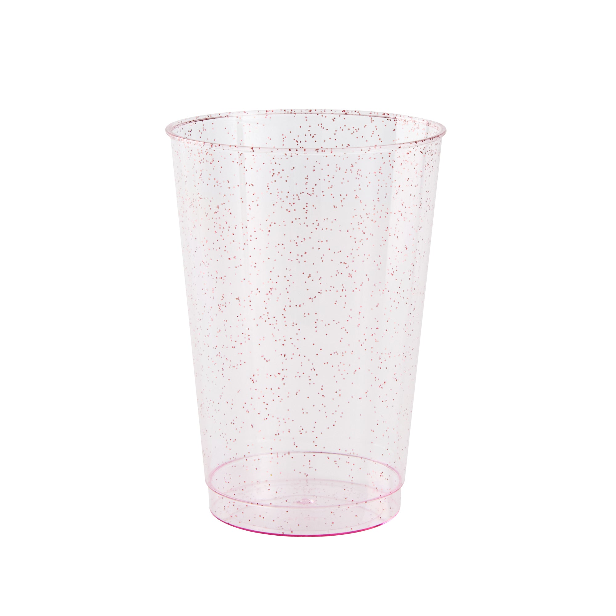 Add a touch of dazzle to your events with our Chef 101 12-ounce Pink Glitter Plastic Tumblers. These party cups feature a striking pink hue infused with elegant glitter accents that enhance any holiday gathering's festive appeal. Crafted from durable PS plastic, these glitter plastic cups are disposable, ensuring convenience for various occasions such as weddings, birthdays, or family reunions. The cold food-friendly design makes these glitter finish cups ideal for chilling desserts or serving cold beverages. Plus, the recyclable feature of these cocktail cups supports eco-conscious catering services. Pairing beautifully with any drink color, these pink disposable cups will refine and elevate the presentation of your bar service. Experience the perfect blend of style and practicality with these 12-ounce disposable plastic glasses that measure 3 inches in diameter and 4.3 inches in height. Sold in a 500 count box.
