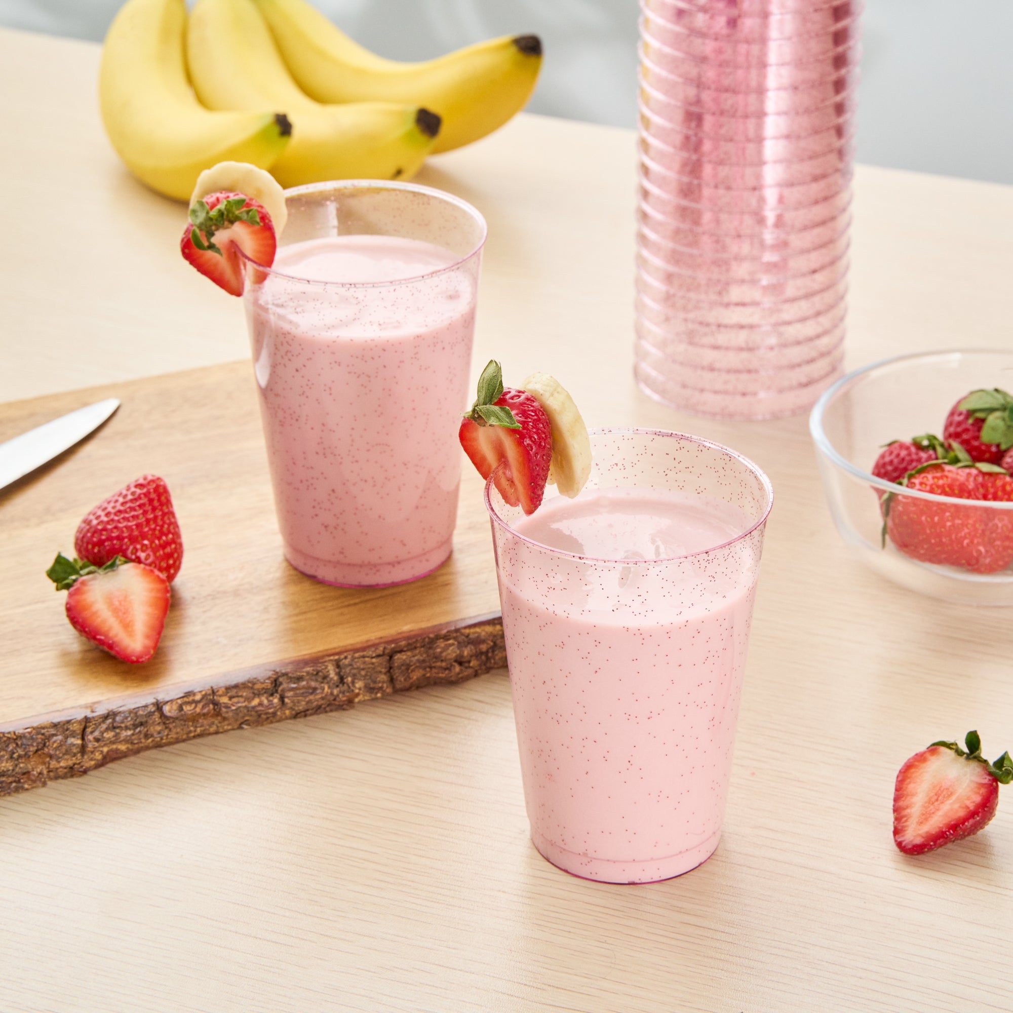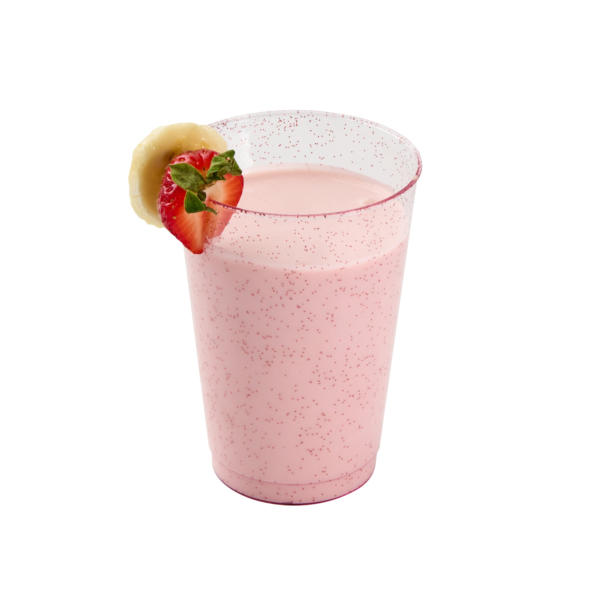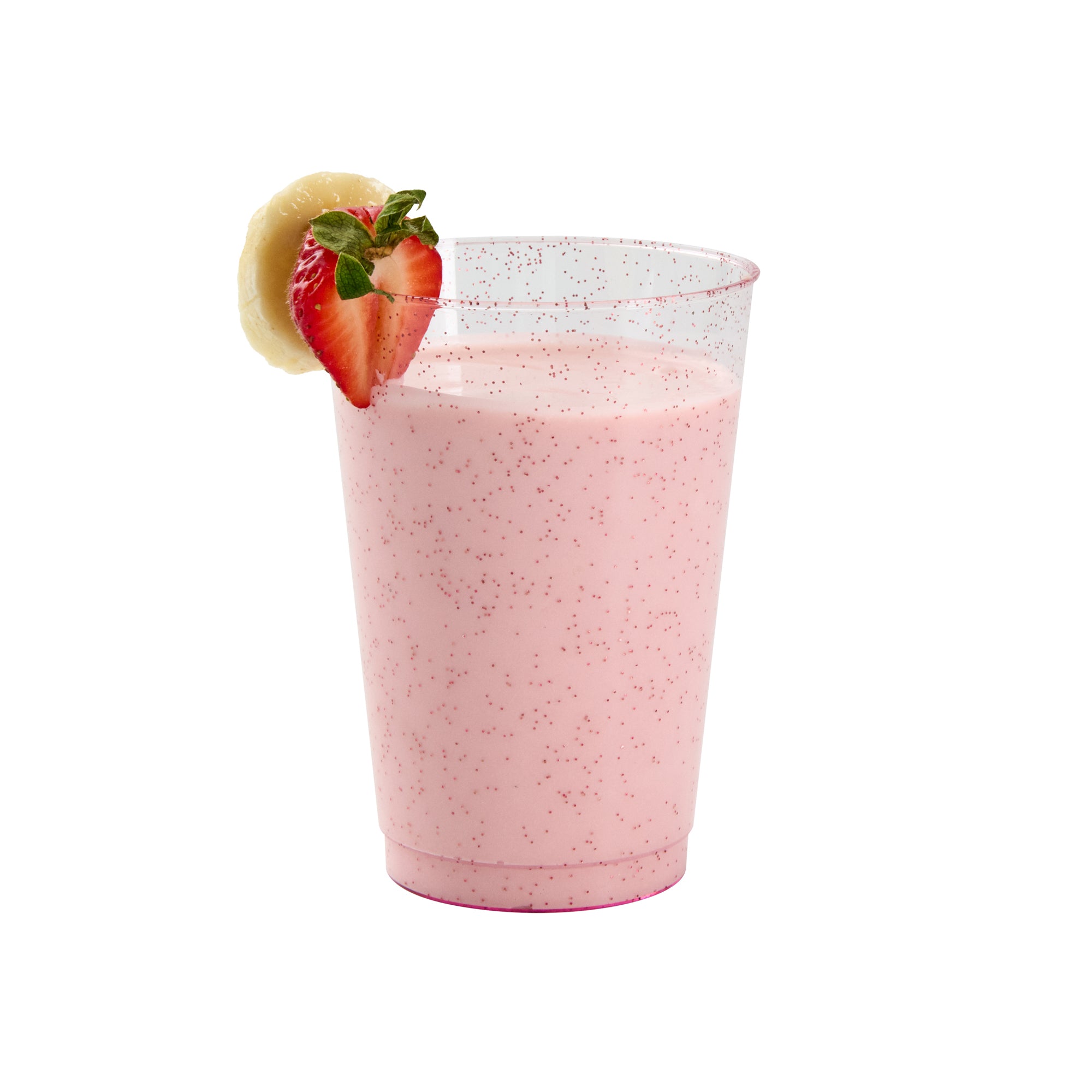 Add a touch of dazzle to your events with our Chef 101 12-ounce Pink Glitter Plastic Tumblers. These party cups feature a striking pink hue infused with elegant glitter accents that enhance any holiday gathering's festive appeal. Crafted from durable PS plastic, these glitter plastic cups are disposable, ensuring convenience for various occasions such as weddings, birthdays, or family reunions. The cold food-friendly design makes these glitter finish cups ideal for chilling desserts or serving cold beverages. Plus, the recyclable feature of these cocktail cups supports eco-conscious catering services. Pairing beautifully with any drink color, these pink disposable cups will refine and elevate the presentation of your bar service. Experience the perfect blend of style and practicality with these 12-ounce disposable plastic glasses that measure 3 inches in diameter and 4.3 inches in height. Sold in a 500 count box.