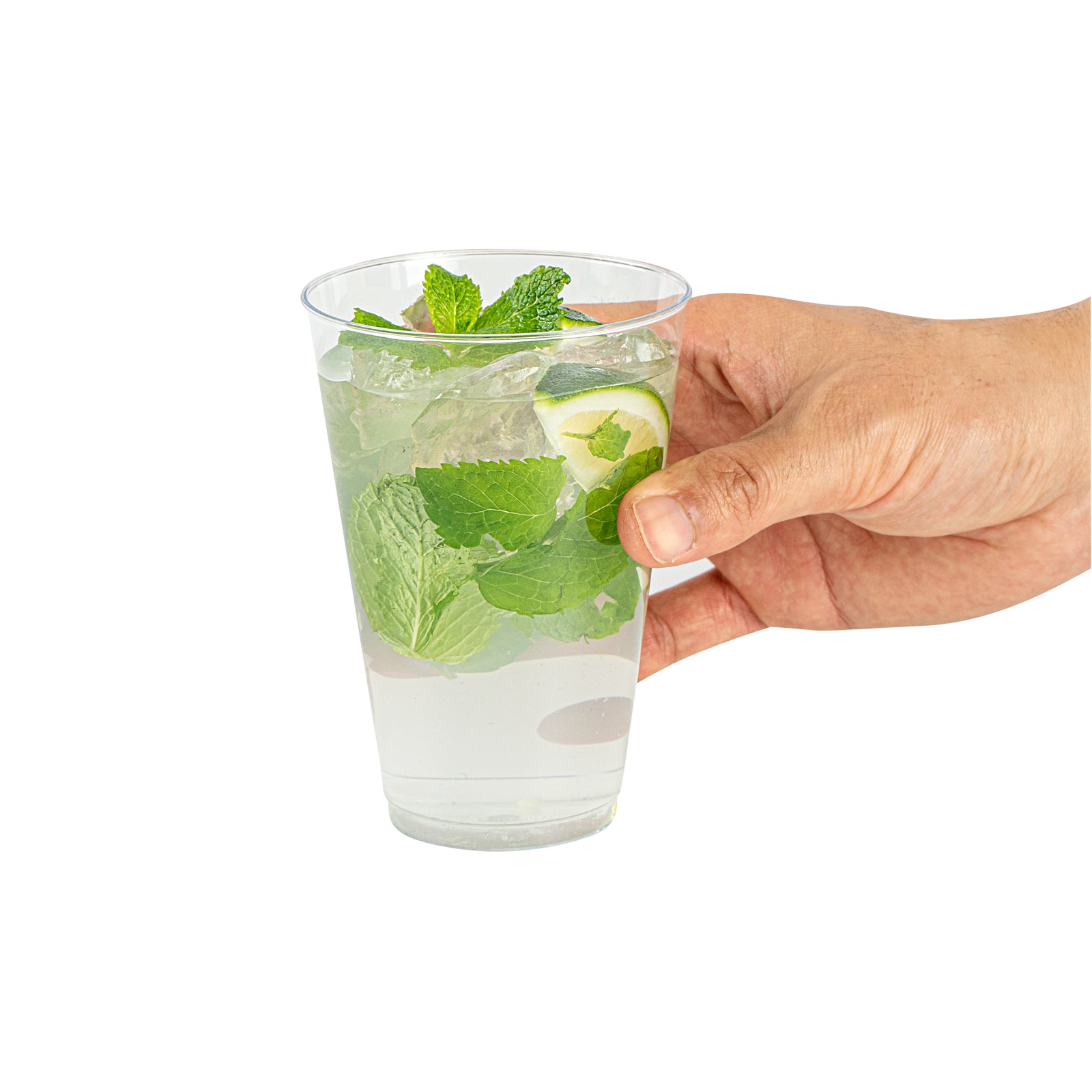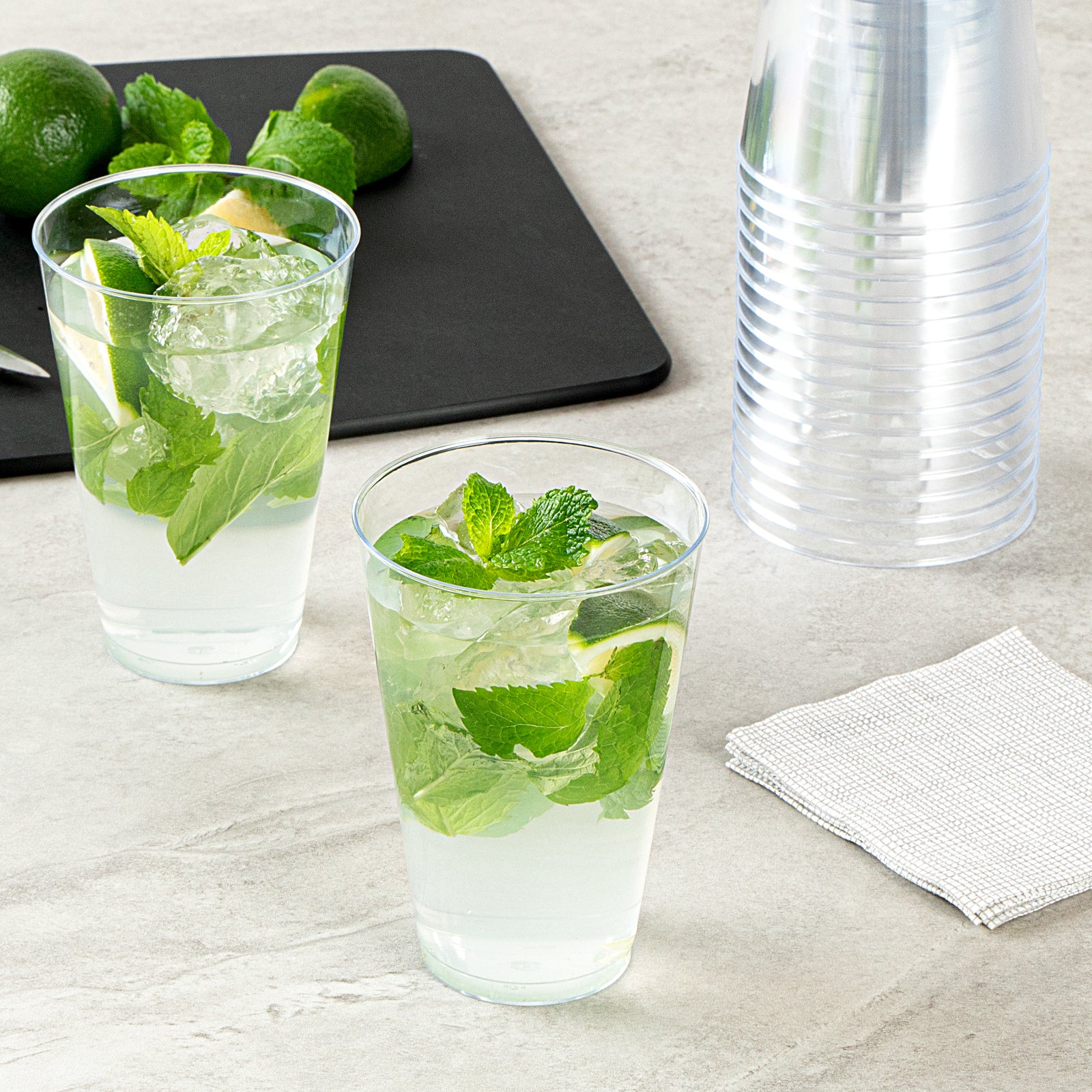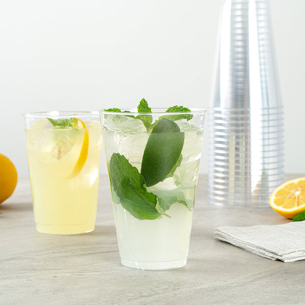 The durable PS plastic construction of these clear plastic disposable cups provides a sturdy drinking experience without any worry of breakage. Manufactured with rolled rims for additional strength.