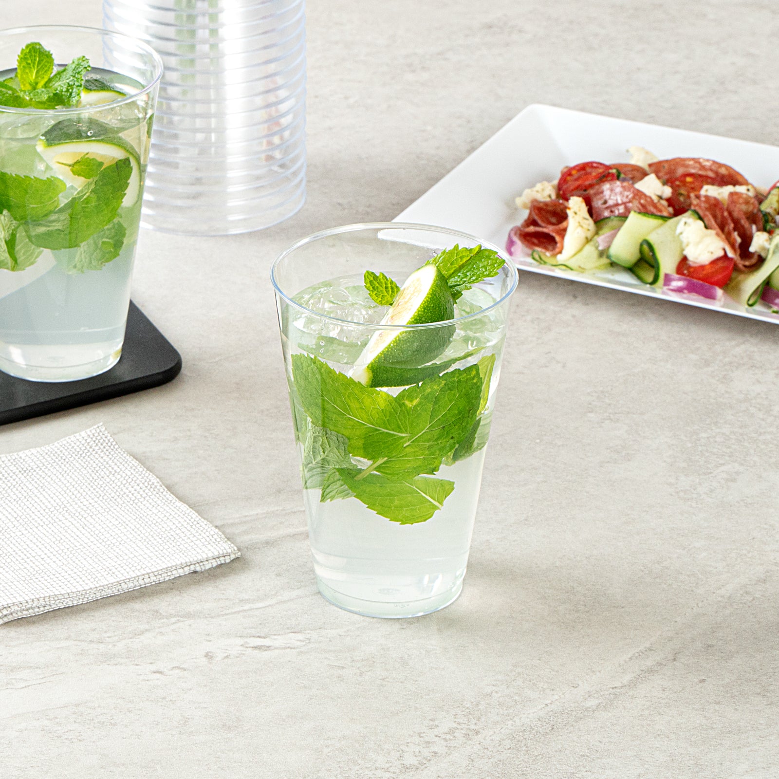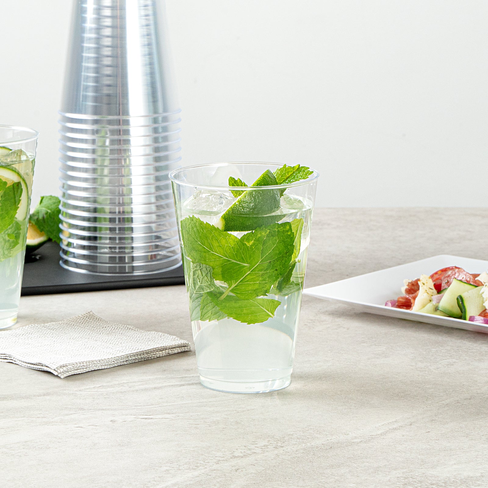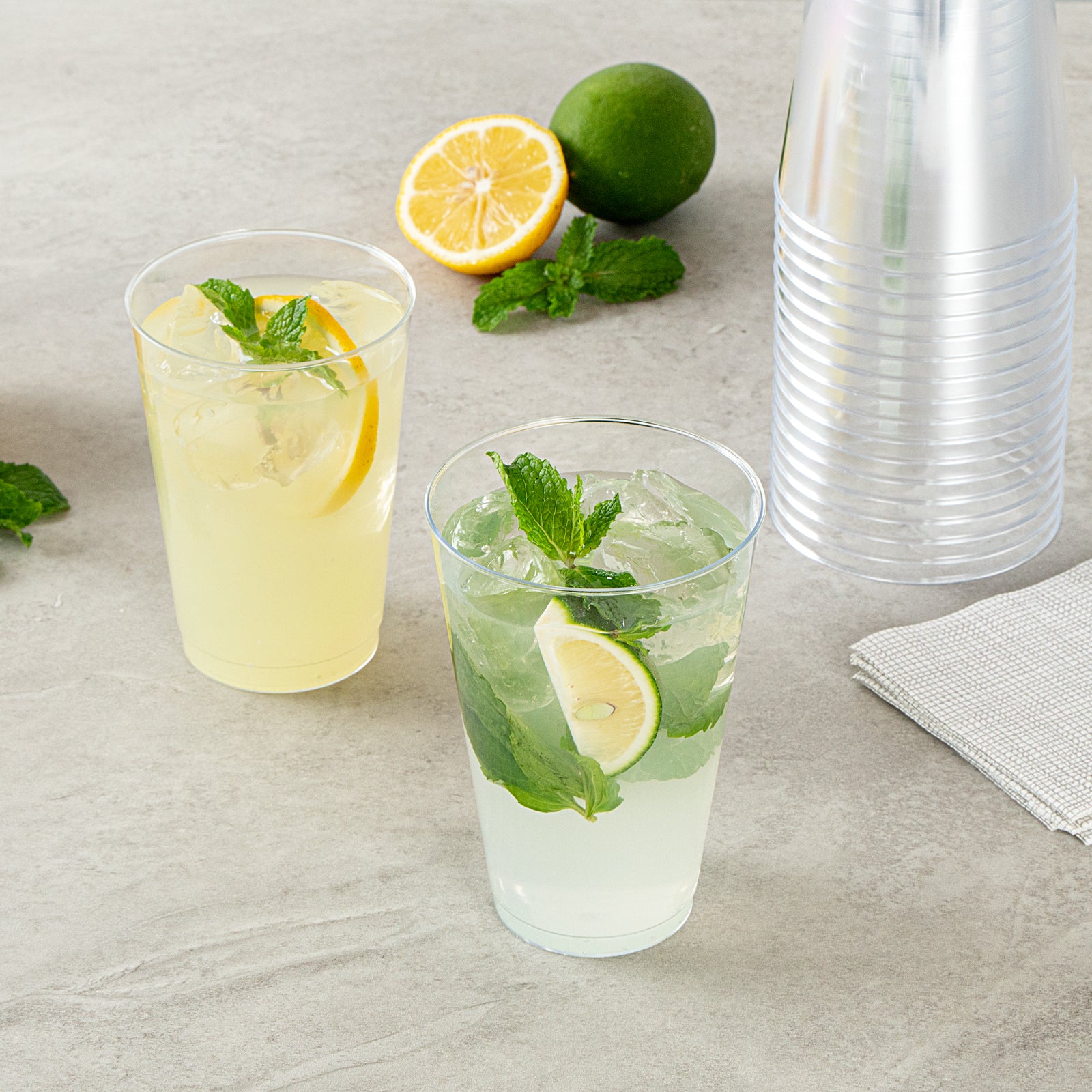 The durable PS plastic construction of these clear plastic disposable cups provides a sturdy drinking experience without any worry of breakage. Manufactured with rolled rims for additional strength.