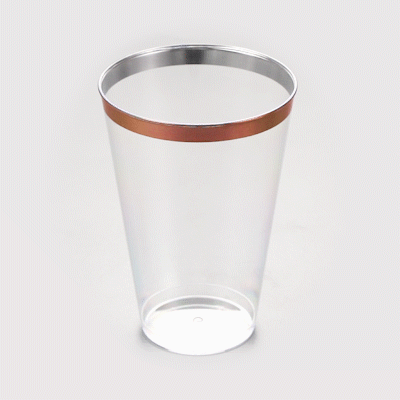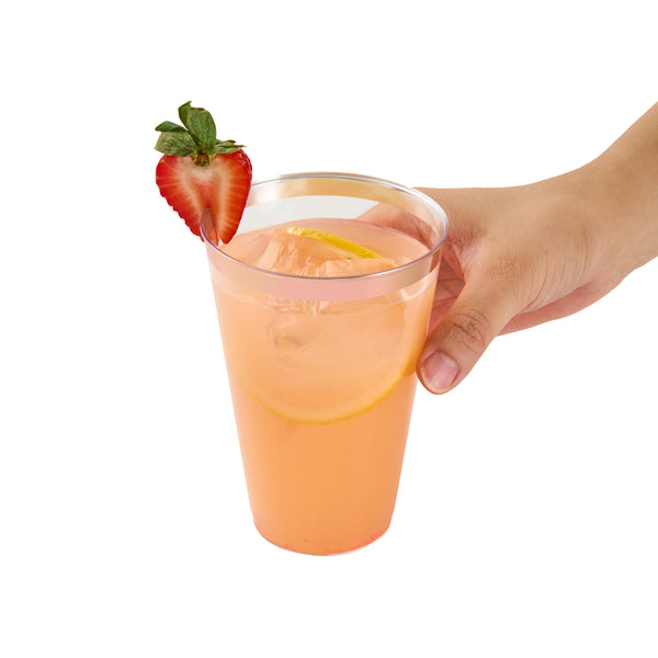 14 OZ CLEAR PLASTIC TUMBLER - WITH ROSE GOLD RIM