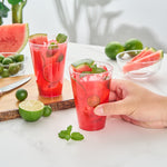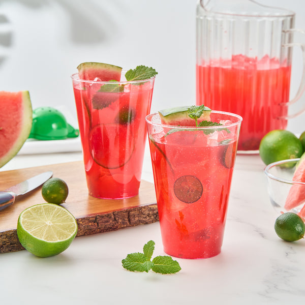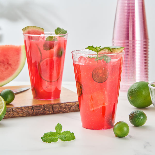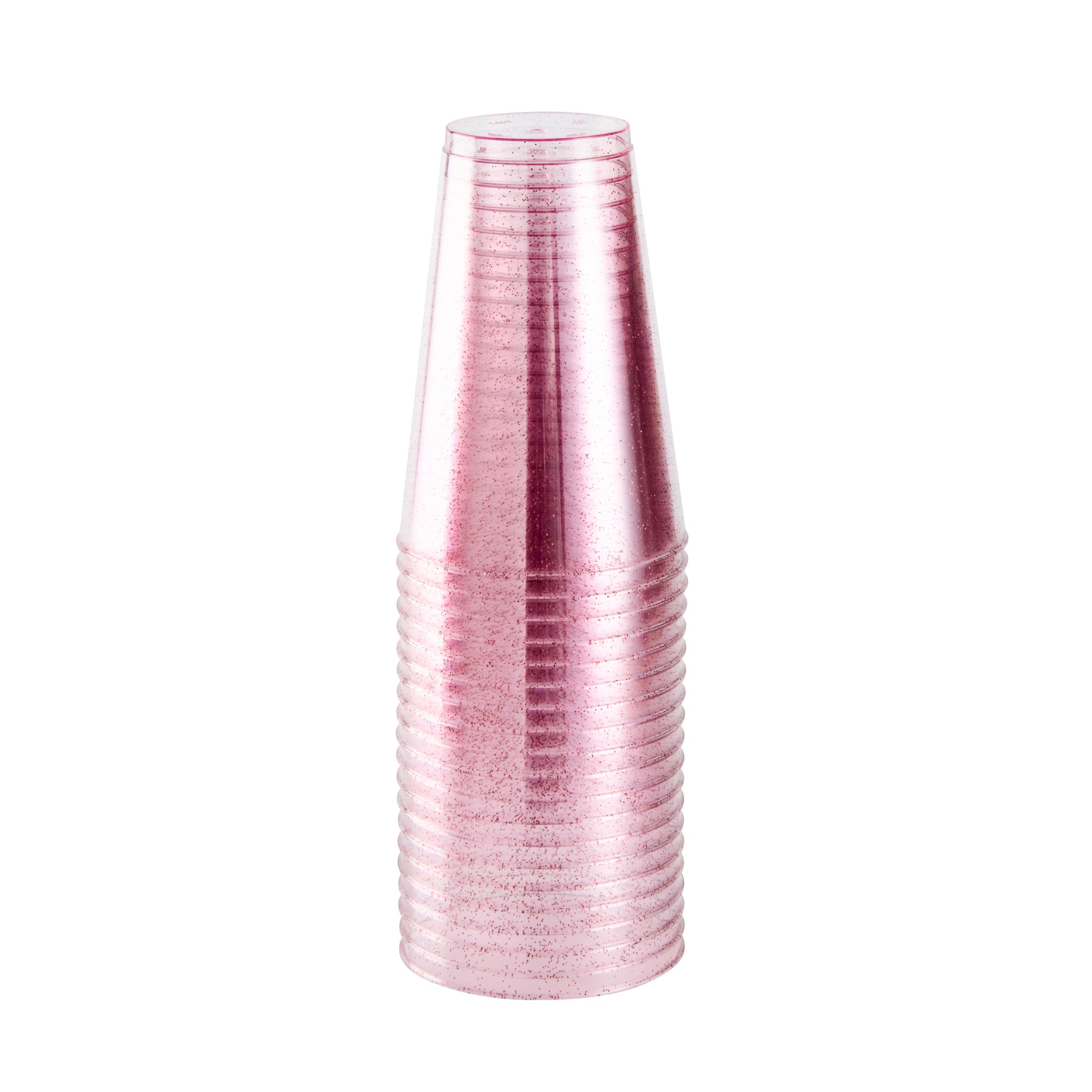 Add sparkle to your party ambiance with our Chef 101 14-ounce Pink Glitter Plastic Tumblers. These party cups feature a pink glitter design that elevates holiday party decor confidently. Made from durable PS plastic, these pink disposable cups are ideal for busy events, fitting neatly on crowded tables to serve cocktails or sodas stylishly. Designed to be disposable, these glitter finish cups are perfect for quick-cleanup at your busy venues. The cold food-friendly form of these cocktail cups ensures reliable performance during service. Plus, the recyclable nature of these attractive cups supports eco-conscious operations easily. Perfect for weddings, birthdays, or family reunions, these versatile disposable cocktail glasses add a refined touch to any occasion. Embrace an enchanting presentation with these 14-ounce glitter plastic cups that measure 3.3 inches in diameter and 4.8 inches in height. Sold in a 20 count box.