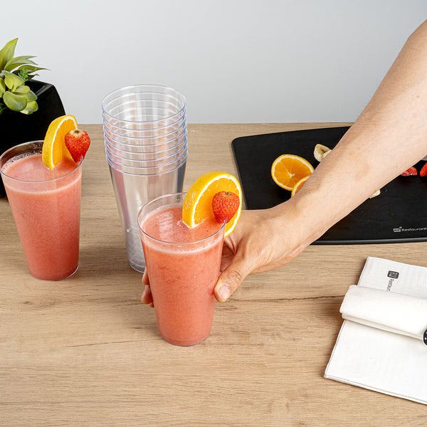 Showcasing a clear finish, these plastic drinking cups allow you to fully appreciate the visual aspect of your chosen beverages. It is a perfect choice for a variety of drinks!