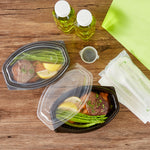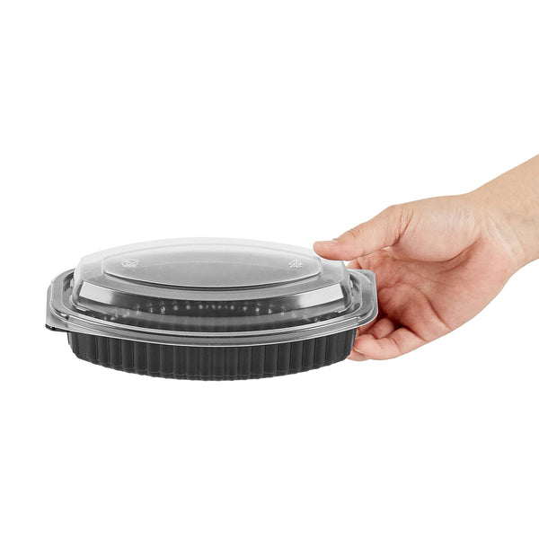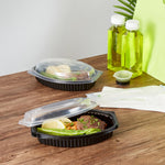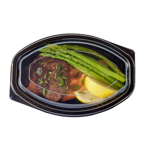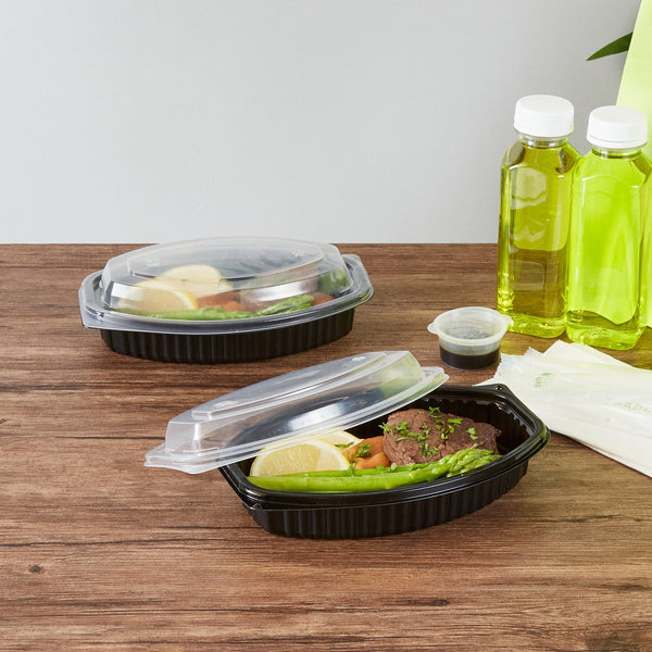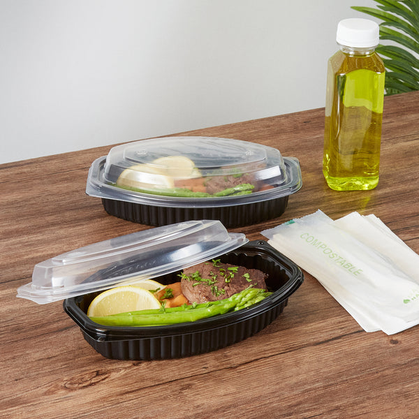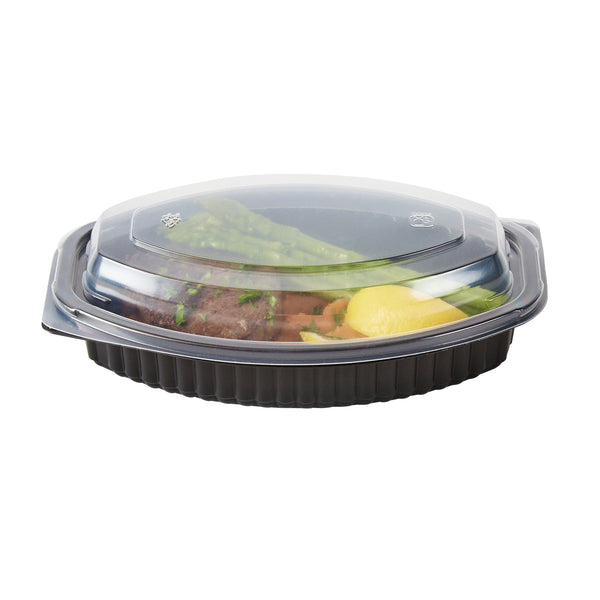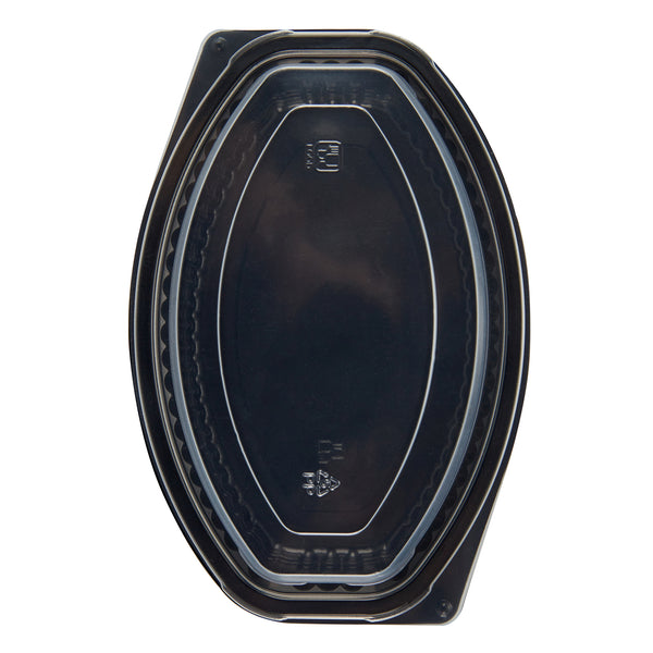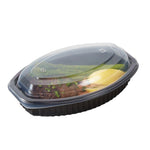 16 OZ OVAL BLACK PLASTIC FOOD CONTAINER - WITH CLEAR LID