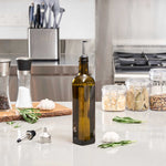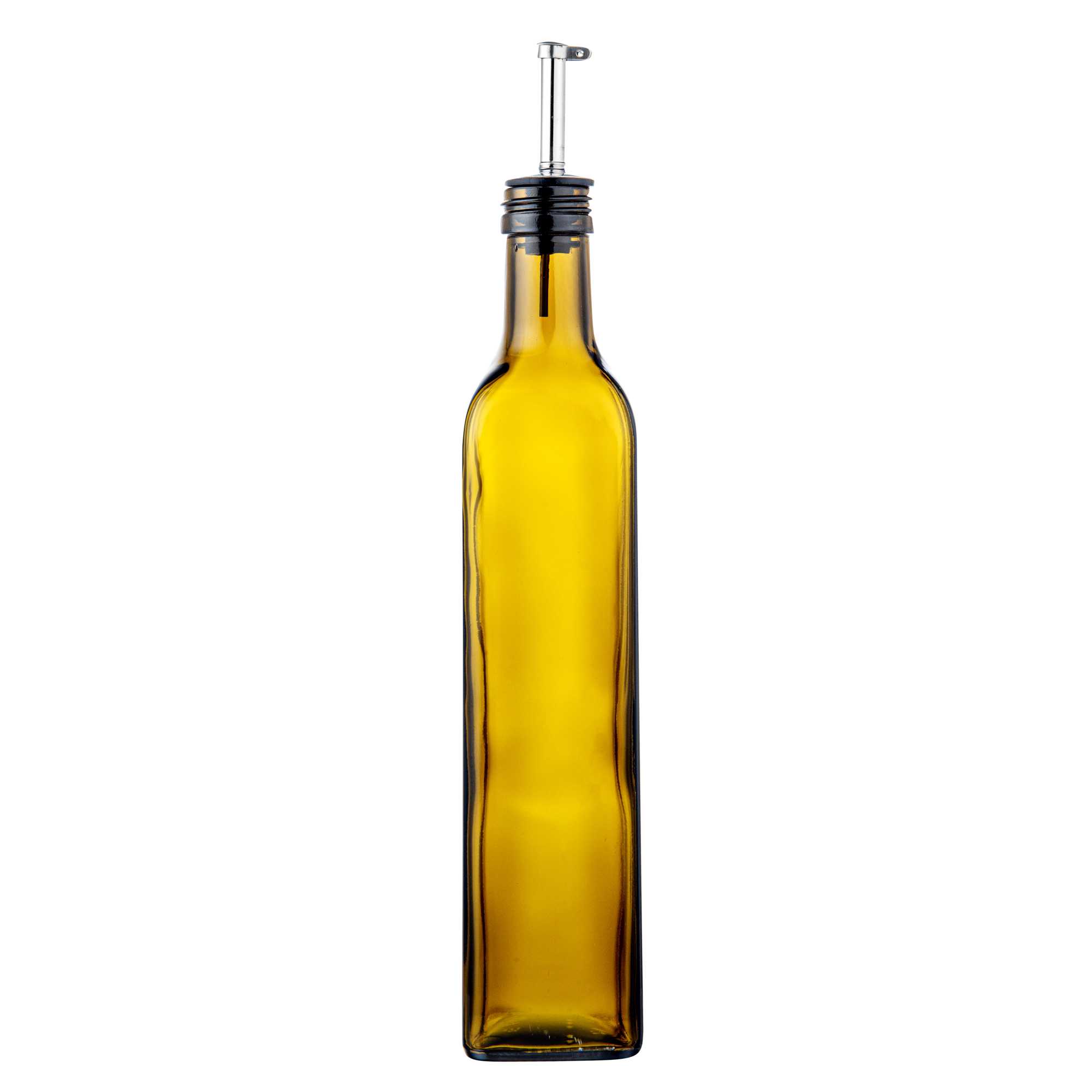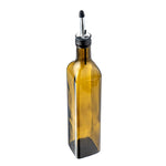 17 OZ AMBER GLASS OLIVE OIL DISPENSER - WITH STAINLESS STEEL POURERS