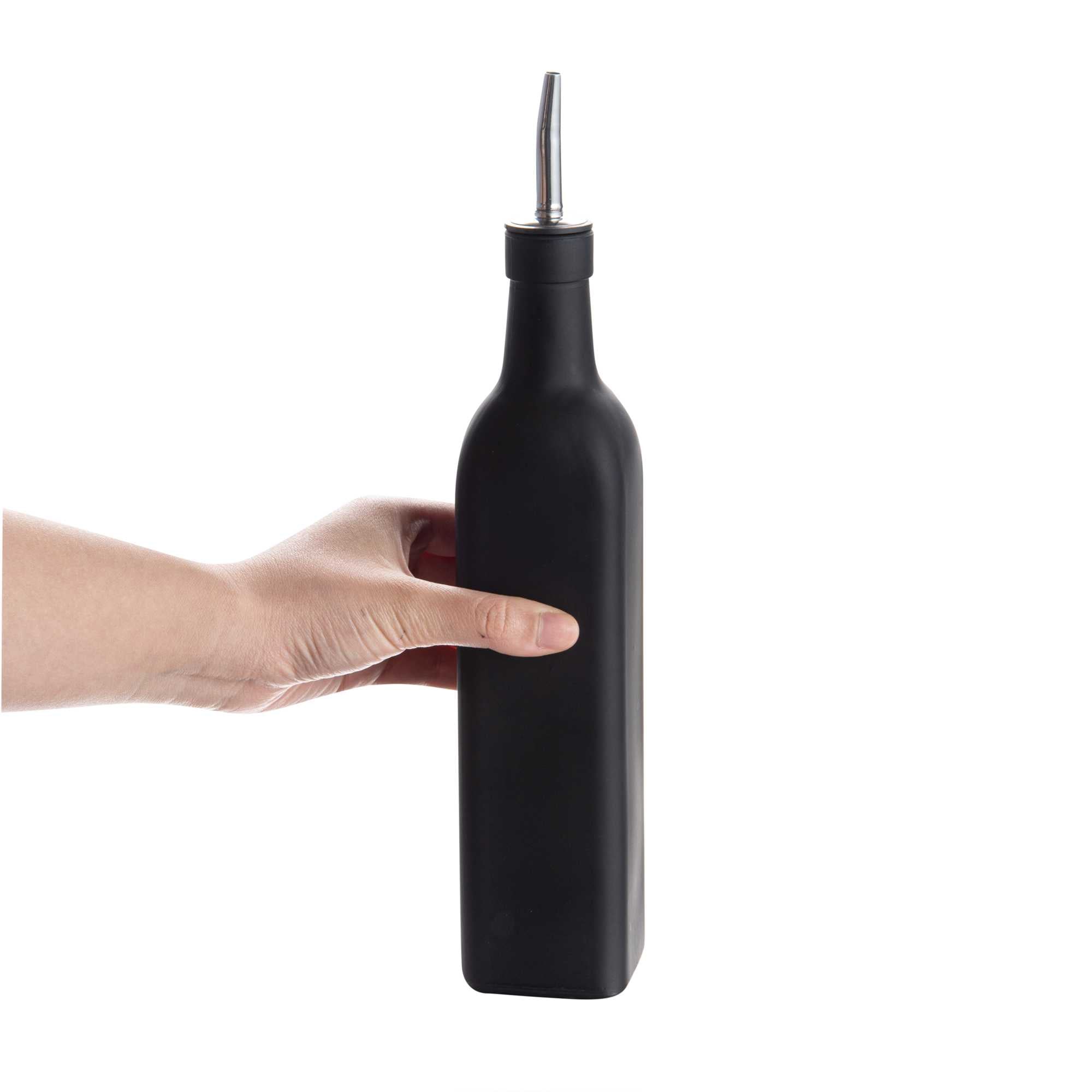 Chef 101 17 oz Black Glass Olive Oil Dispenser - with Stainless Steel Pourer, Funnel Kit - 2 1/4
