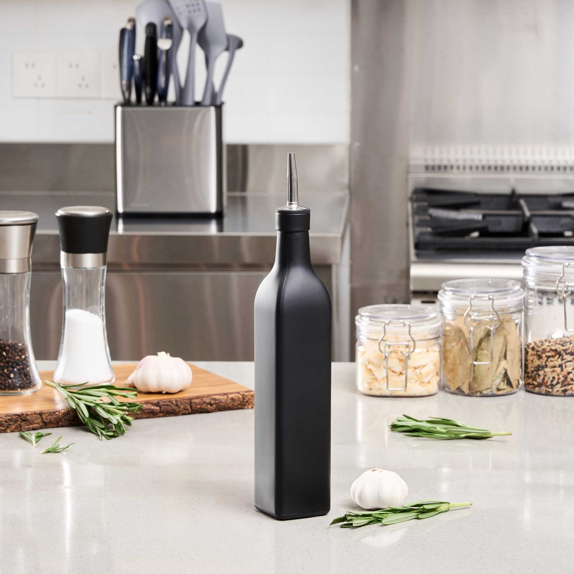 • Black finish keeps light from seeping into the bottle to maintain oil's quality