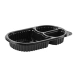 19 OZ OVAL BLACK PLASTIC 3 COMPARTMENT FOOD CONTAINER - WITH CLEAR LID