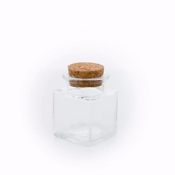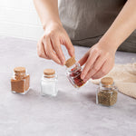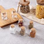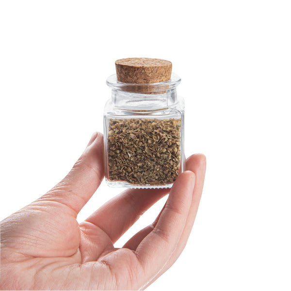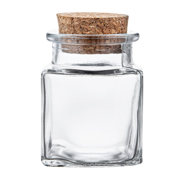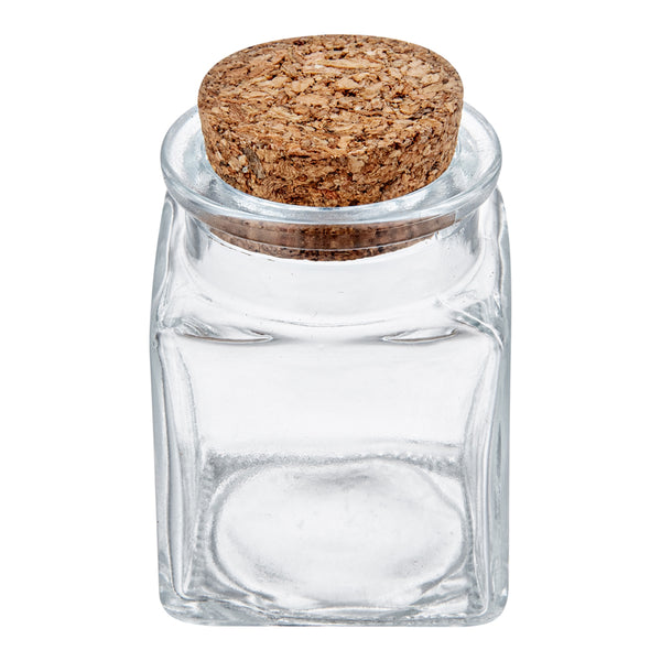 2 OZ SQUARE CLEAR GLASS HERB STORAGE JAR - WITH CORK LID