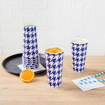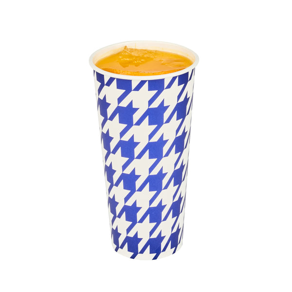 22 OZ ROUND BLUE HOUNDSTOOTH PAPER COLD CUP