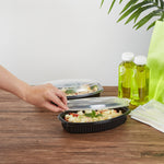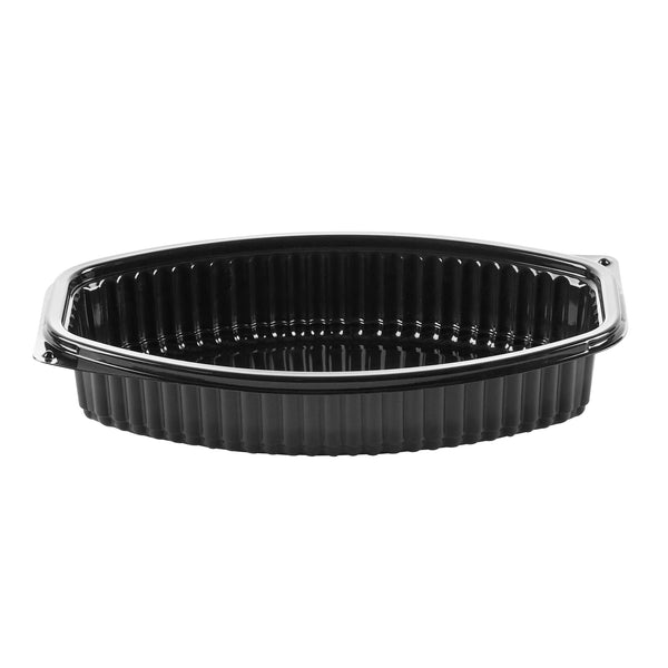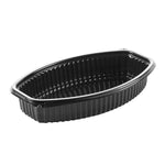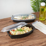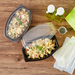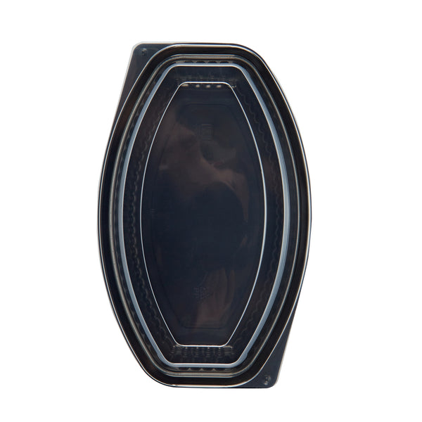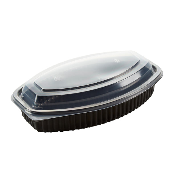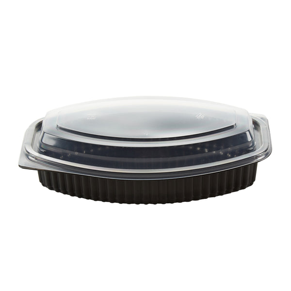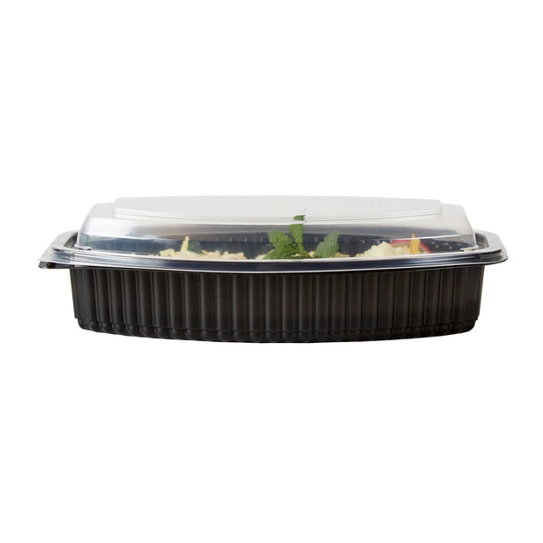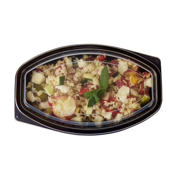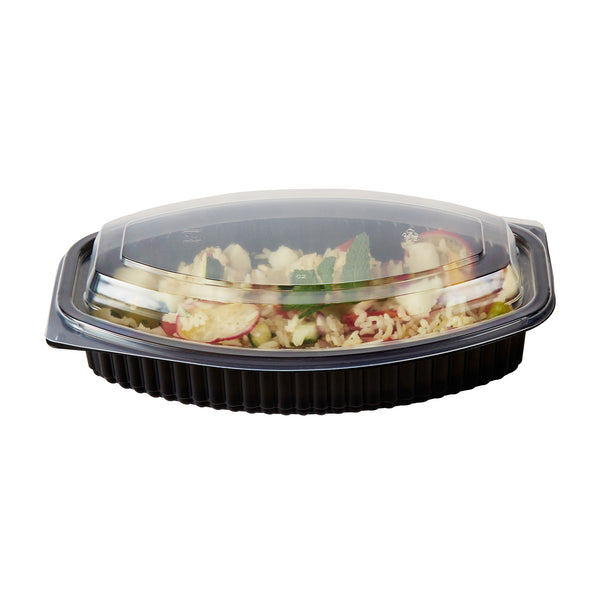 24 OZ OVAL BLACK PLASTIC FOOD CONTAINER - WITH CLEAR LID