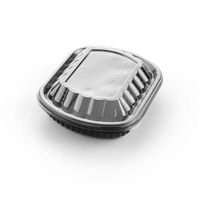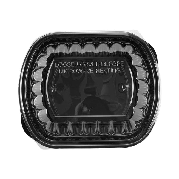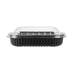 24 OZ RECTANGLE BLACK PLASTIC FOOD CONTAINER - WITH CLEAR LID