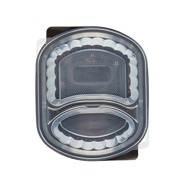 28 OZ OVAL BLACK PLASTIC FOOD CONTAINER - WITH CLEAR LID