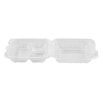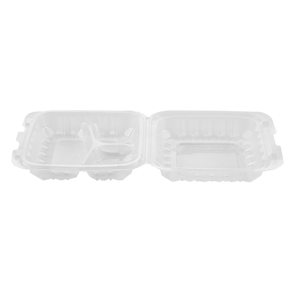 30 OZ SQUARE CLEAR PLASTIC CLAMSHELL CONTAINER - 3 COMPARTMENTS