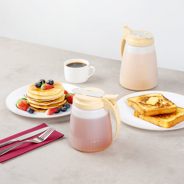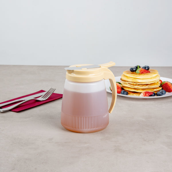 - Easy-to-grip handle for easy carrying and pouring of syrups