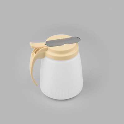 - Sliding thumb tab allows controlled pouring of sauces and syrups