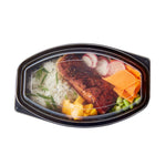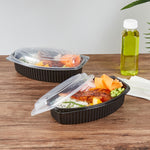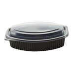 32 OZ OVAL BLACK PLASTIC FOOD CONTAINER - WITH CLEAR LID
