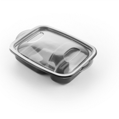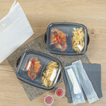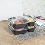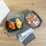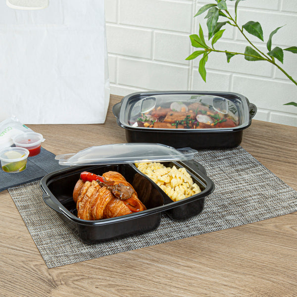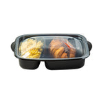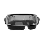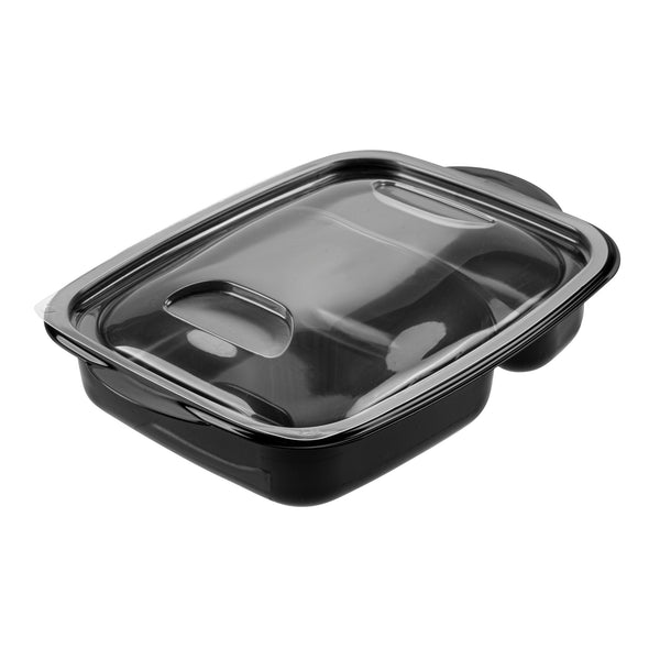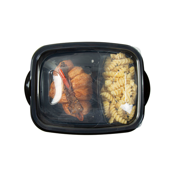 36 OZ BLACK PLASTIC FOOD CONTAINER - WITH CLEAR LID, 2 COMPARTMENTS