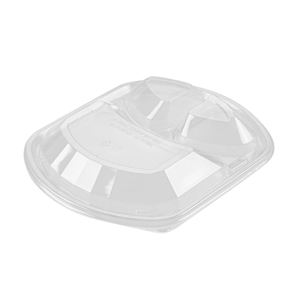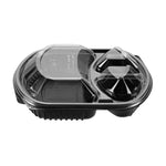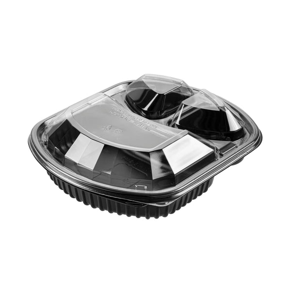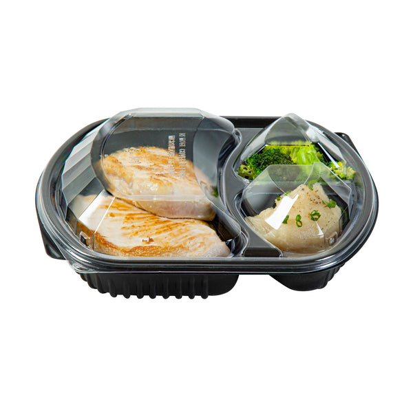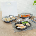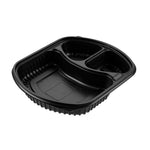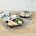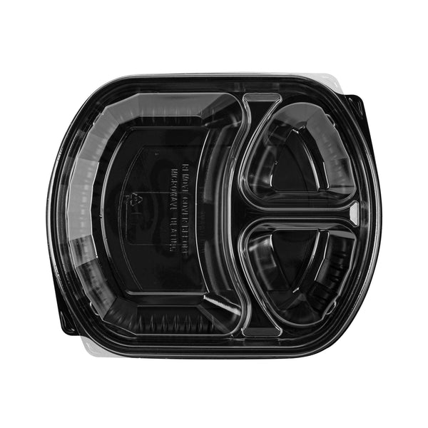 36 OZ BLACK PLASTIC FOOD CONTAINER - WITH CLEAR LID, 3 COMPARTMENTS