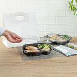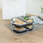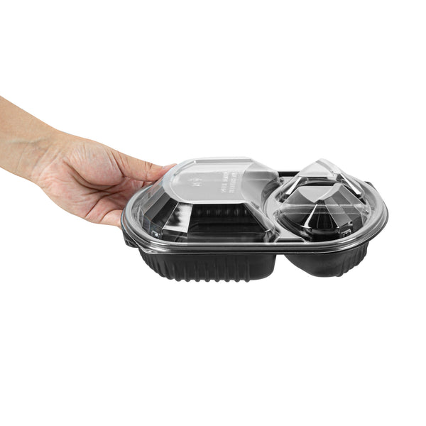 36 OZ BLACK PLASTIC FOOD CONTAINER - WITH CLEAR LID, 3 COMPARTMENTS