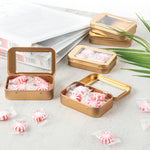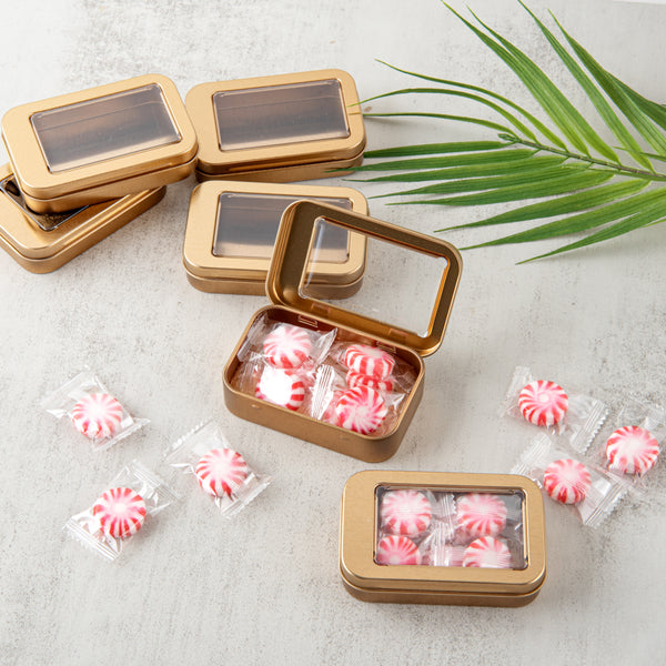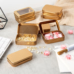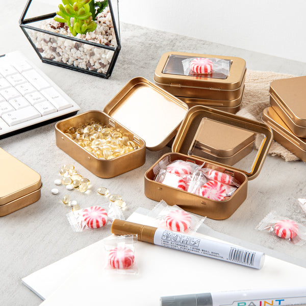 Carry your tiny hairclips wherever you go using our Chef 101 4-ounce Rectangle Gold Tin Containers. These rectangular storage boxes are made of premium tin material, making them highly durable for efficient use. To avoid misplacing items, these metal storage boxes come with lids with a transparent PVC window that lets you see the contents inside, avoiding any package or delivery errors. With a press-on lid, these tin storage containers secure the contents inside during transit. The smooth edges of these tin containers for storage provide you with a comfortable hold while carrying them along. Manufactured to fit in all your bags, these rectangular metal storage containers have a slim and sleek structure. Plus, the plain gold finish of these airtight tin boxes lets you customize them with your DIY ideas. Each of these 4-ounce tin storage boxes measures 3.75 inches in length by 2.25 inches in width. Sold in a 10 count box.