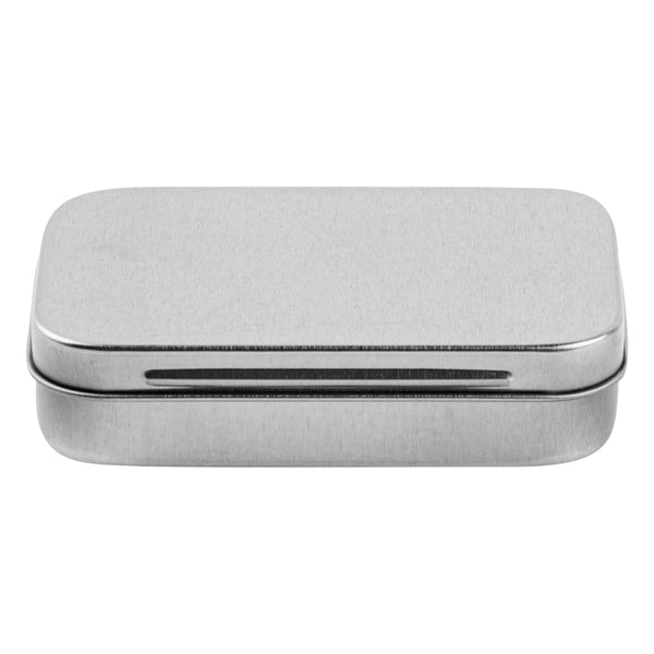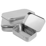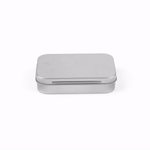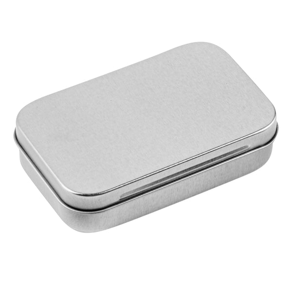 4 OZ RECTANGLE SILVER TIN CONTAINER - WITH HINGED LID