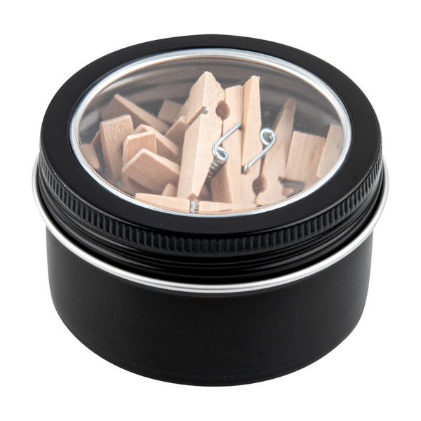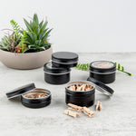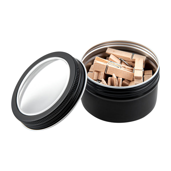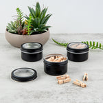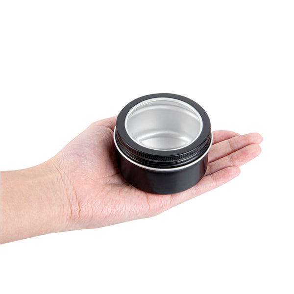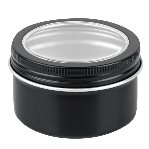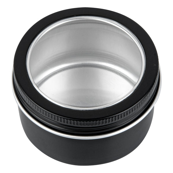 4 OZ ROUND BLACK TIN CONTAINER - WITH WINDOW LID
