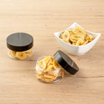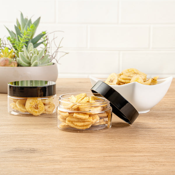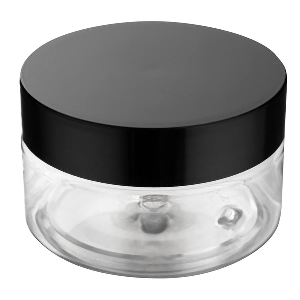 4 OZ ROUND CLEAR PLASTIC CANDY AND SNACK JAR - WITH BLACK PLASTIC LID