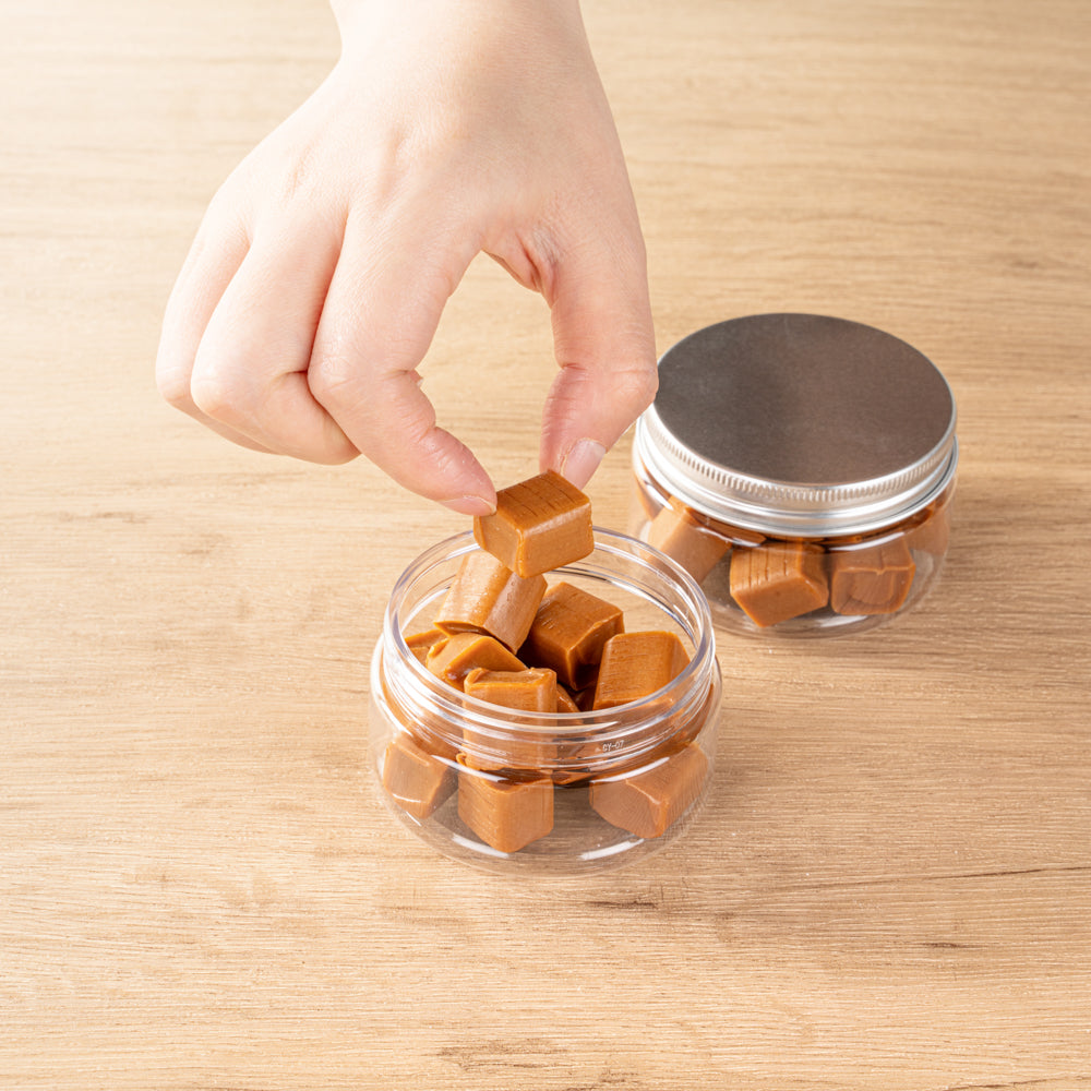 Made with clear, premium PET plastic, these candy holders are transparent, allowing for easy visibility of the colorful candies inside. These jars enable your to easily showcase tempting treats for candy buffets, bakeries or flea markets.