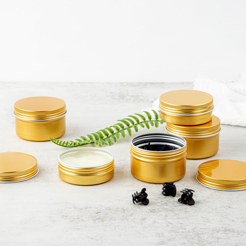 4 OZ ROUND GOLD TIN CONTAINER - WITH SCREW LID