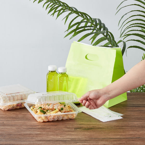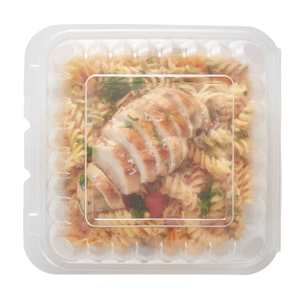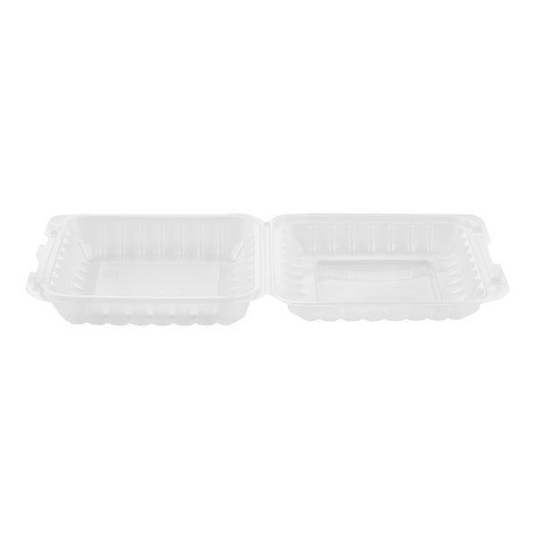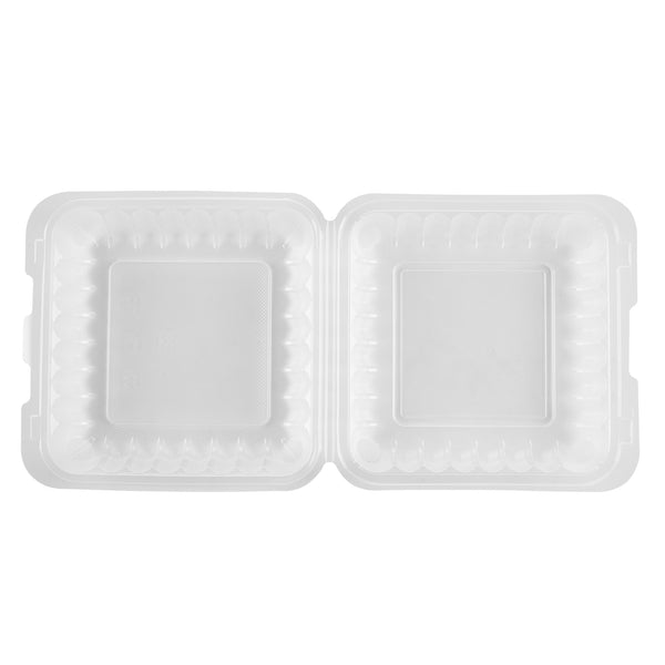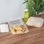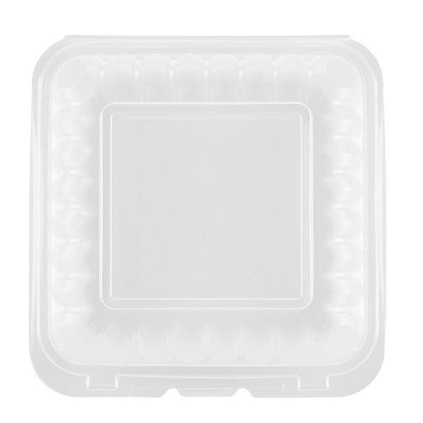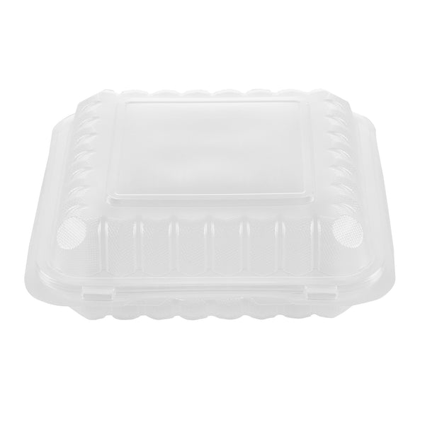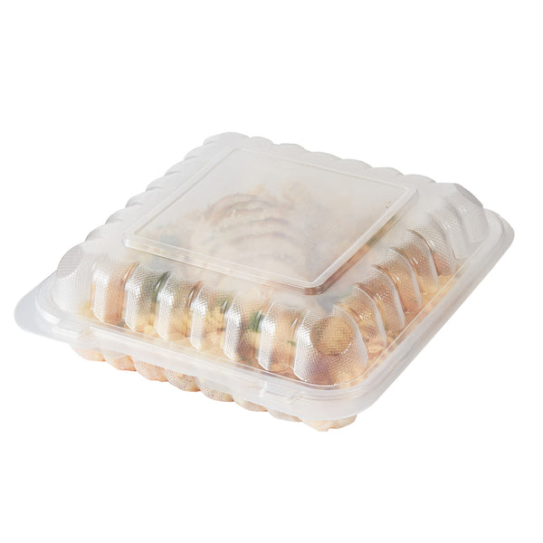 Pack yummy sandwiches with our Chef 101 40-ounce Square Clear Plastic Clamshell Containers. For maximum convenience, these to go containers are microwave-safe, enabling customers to heat their meals effortlessly. Featuring a built-in hinged lid, these to go boxes form a secure seal, providing a secure seal for a mess-free take out solution. The clear finish of these take out containers expertly showcases the contents, making them perfect for displaying your culinary creations. Crafted from durable plastic, these clamshell containers are ideal for serving both hot and cold dishes. For added versatility, these carry out containers are freezer-safe, making them perfect for storing leftovers. These take out boxes are disposable and can be discarded after use, offering the convenience of easy cleanup after use. To offer an environmentally-friendly food serving container, these plastic take out containers are recyclable and help minimize carbon footprint. Measuring 9 inches in length by 9 inches in width by 3 inches in height, these takeaway containers have a generous capacity of 40 ounces. Sold in a 100 count box.