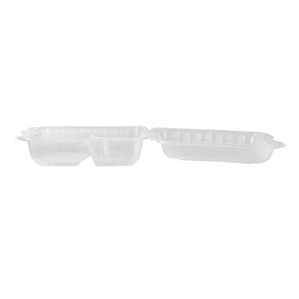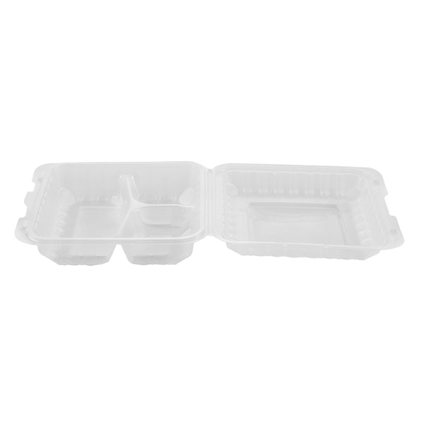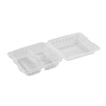 47 OZ SQUARE CLEAR PLASTIC CLAMSHELL CONTAINER - 3 COMPARTMENTS