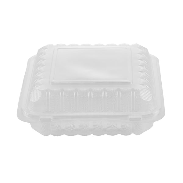 47 OZ SQUARE CLEAR PLASTIC CLAMSHELL CONTAINER - MICROWAVABLE